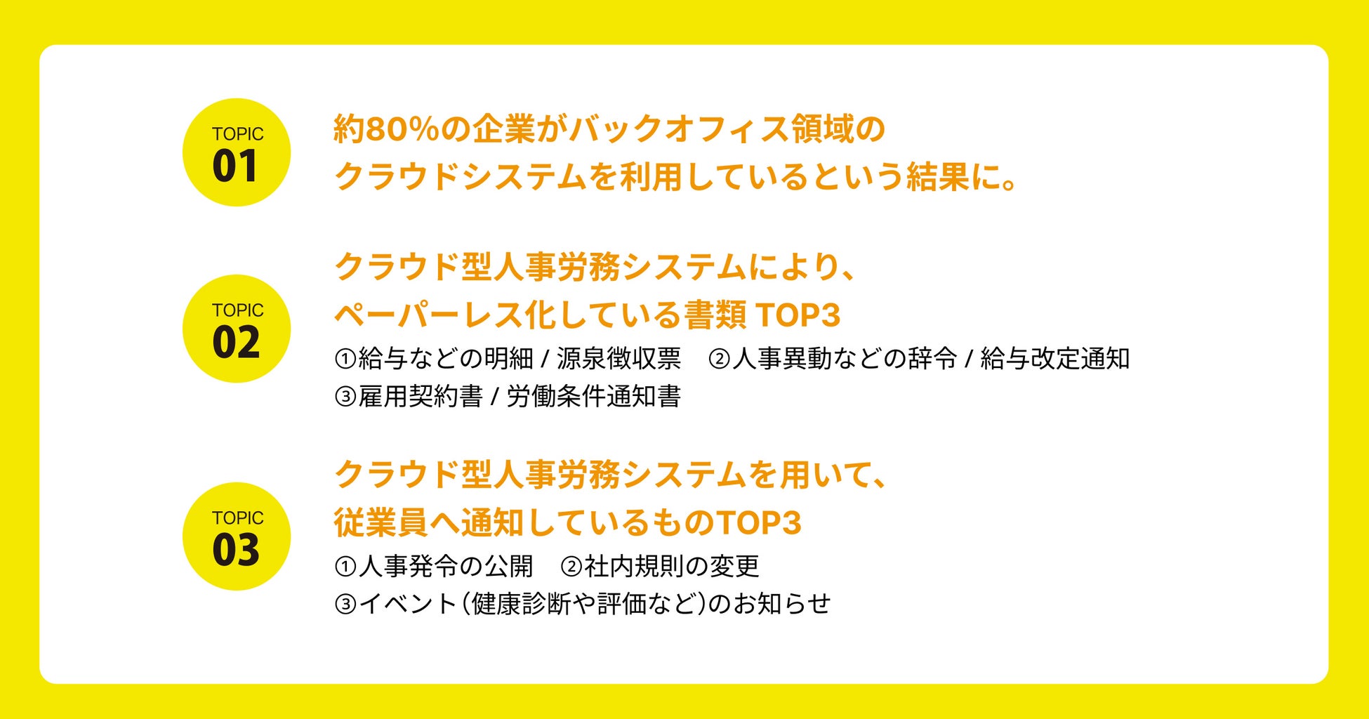 クラウド型人事労務システムにより、従業員へ通知しているものTOP3