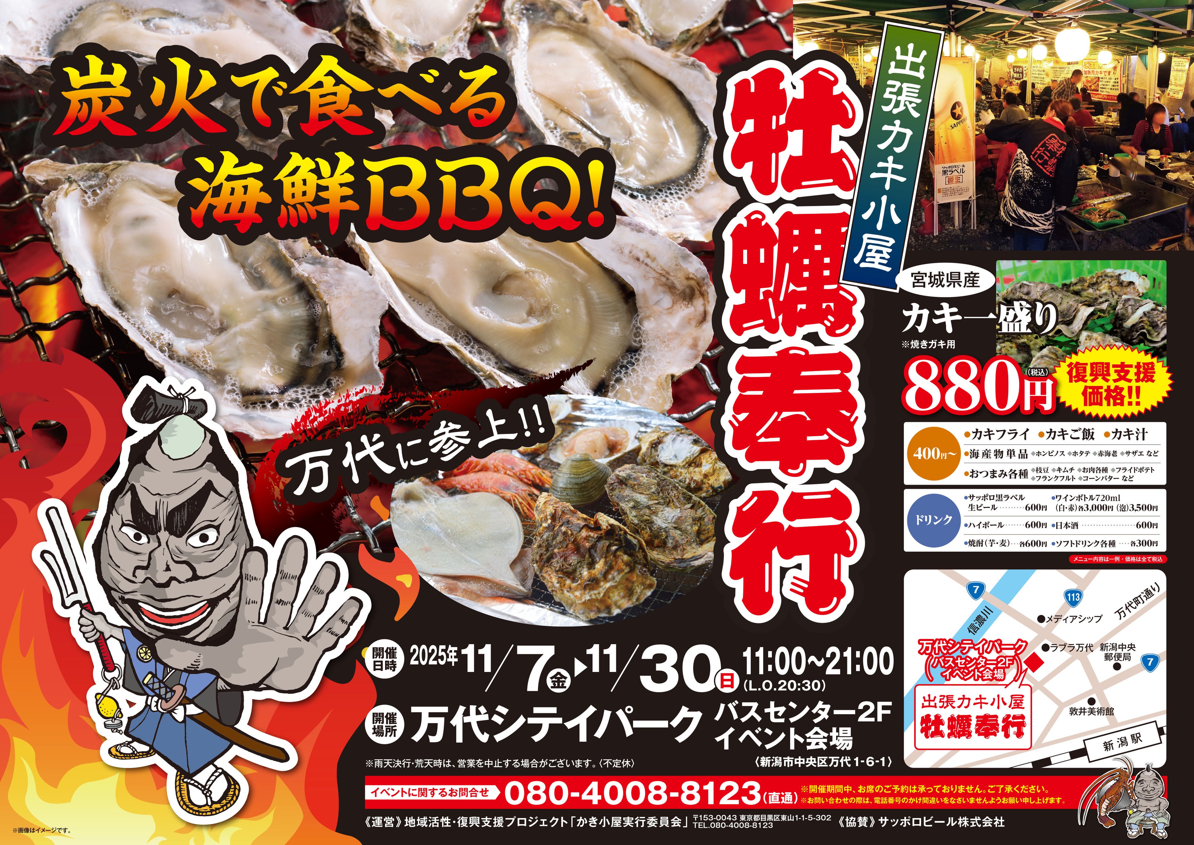 新潟市万代に「出張カキ小屋」参上! 11月7日〜 万代シティパークイベント会場で期間限定開催!《 宮城県産殻付き牡蠣が一盛り880円!! 》
