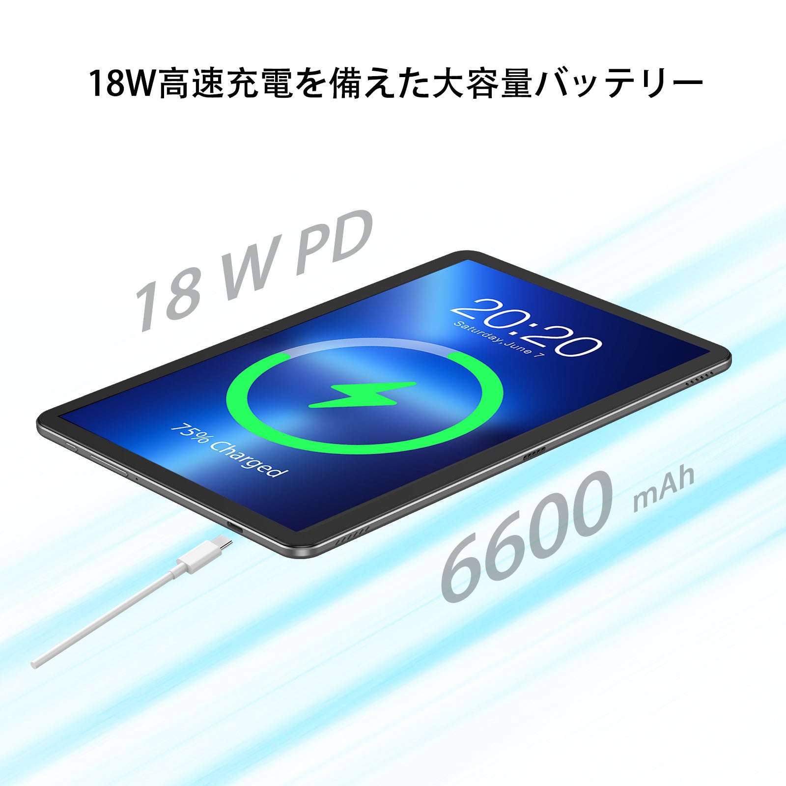 10インチタブレットNPAD Proも18W PD急速充電に対応し、充電時間も短縮。 6600mAhの大容量バッテリー、AIインテリジェント電源管理、映画、読書、ブラウジングを長時間楽しむことができます。