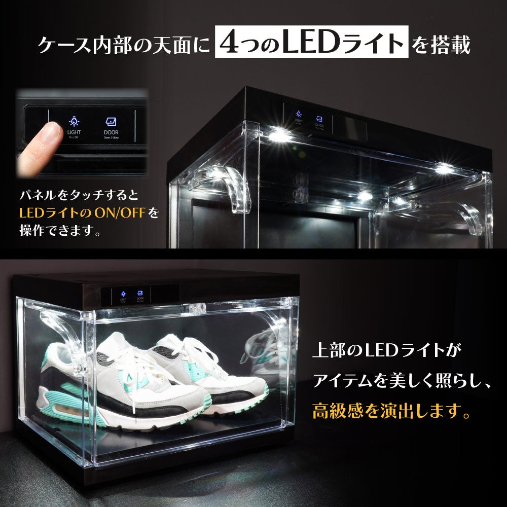 本製品はフィギュアやスニーカーなどを飾ることができる自動開閉スライド機能付きのコレクションケースです。
