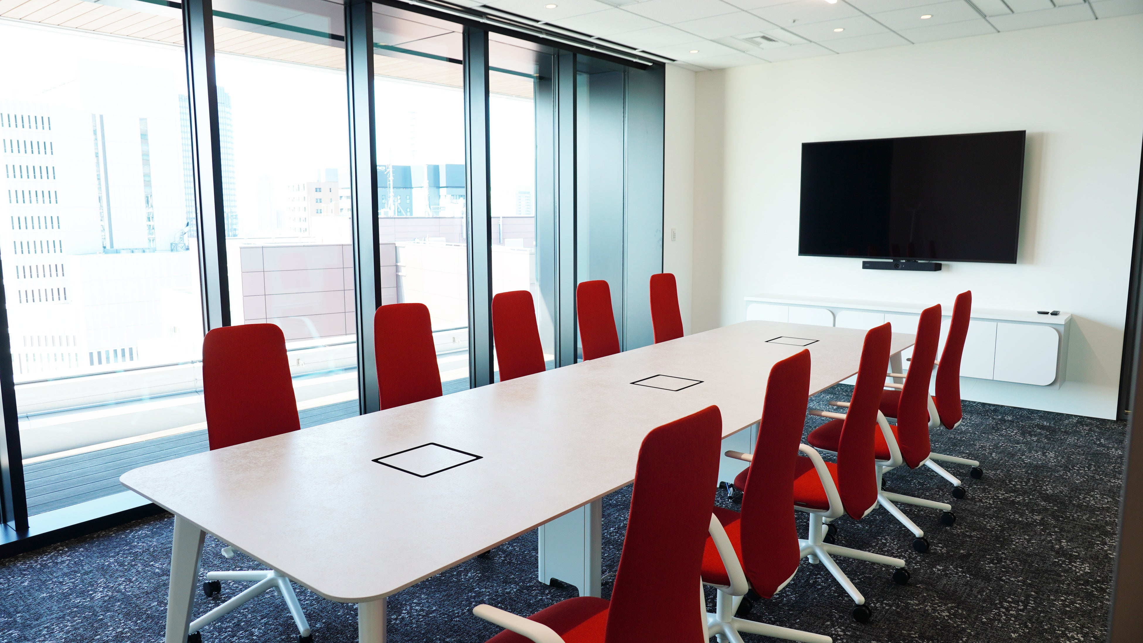 新オフィスでは“Activity Based Working(ABW)”のコンセプトを導入し、執務エリアには各個人の座席に加え、集中作業や打合せなど目的に応じた多様な席種で業務を行うことのできるスペースを設けています。また、会議室にはモニターを設置し、WEB会議や複数名での作業もスムーズに進行することができます。従業員の自律的な成長を促進するとともに、更なるコミュニケーションの活性化を図ります。