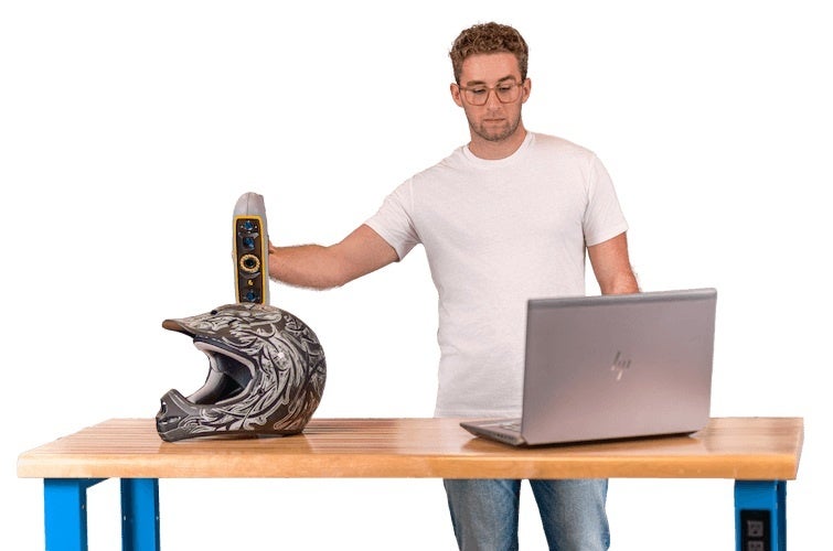 ・Peel 3 のユニークなマルチグリップ三角形ハンドルは、最も一般的な 3D スキャン位置で快適に使用