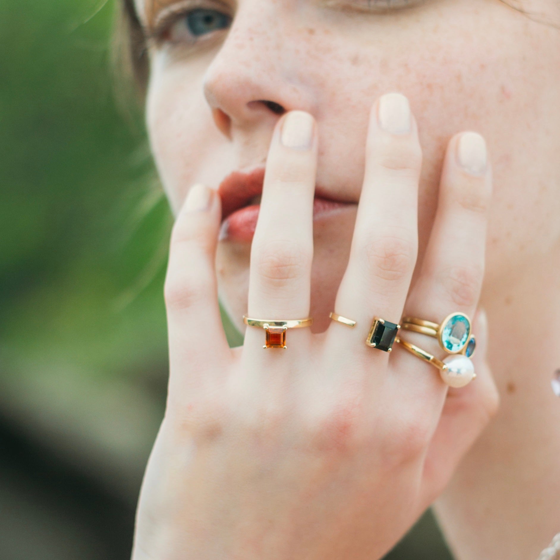 繊細なオープンリングや存在感のあるホライゾンリングは、mi lunaで人気の高いK10素材を使用。1つだけではもちろん、重ね付けをすれば遊び心をプラスできる上品なきれいめスタイルとも好相性です。