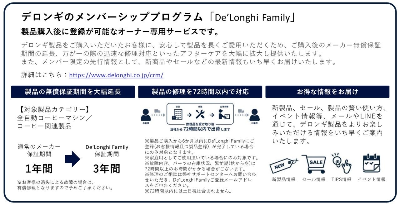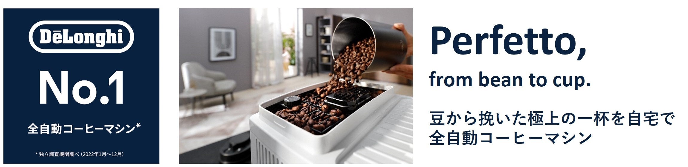 デロンギでは「Perfetto, from bean to cup. 〜豆から挽いた極上の一杯を〜」をスローガンに全自動コーヒーマシンをグローバルで展開しています。“Perfetto”はイタリア語で「完璧な」を意味し、デロンギの全自動コーヒーマシンで豆から挽いた一杯とともに“完璧(Perfetto)な時間”をお楽しみいただきたいという思いが込められています。