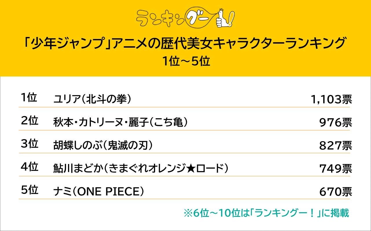 ◆「少年ジャンプ」アニメの歴代美女キャラクターランキングTOP5抜粋