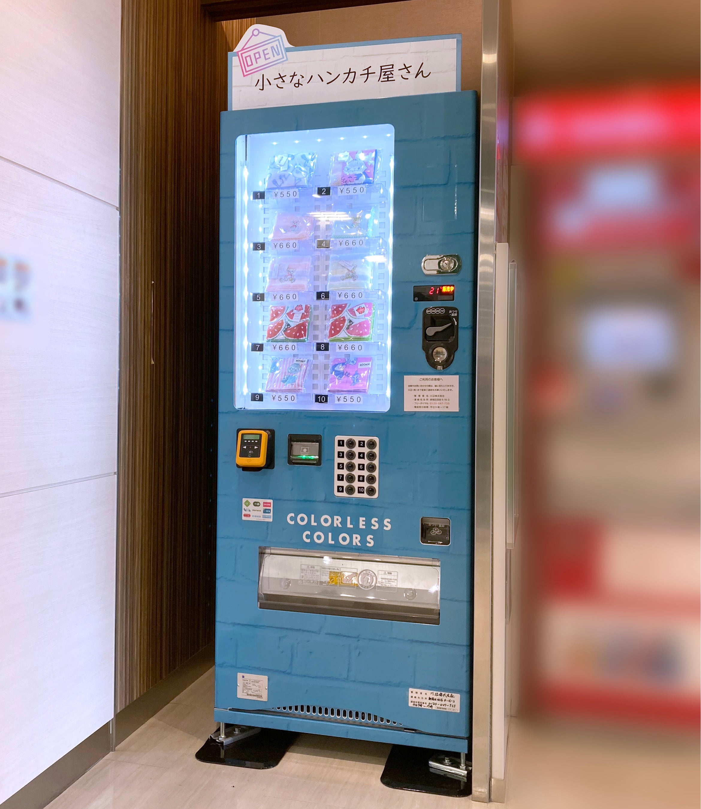 日々の生活の必需品となったタオルハンカチや雑貨が自動販売機で購入できます。