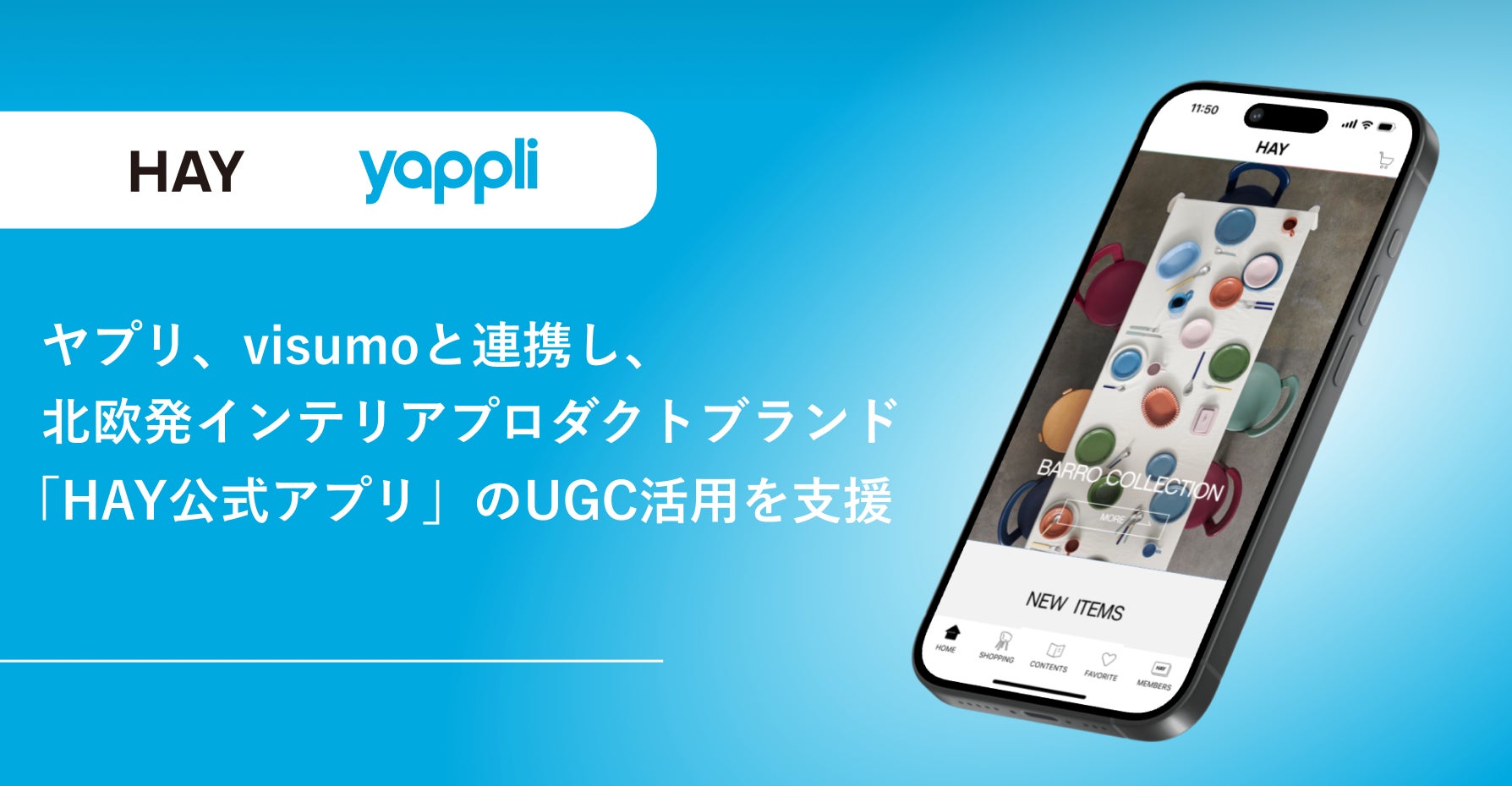 ヤプリ、visumoと連携し、北欧発インテリアプロダクトブランド「HAY公式アプリ」内のUGC活用を支援