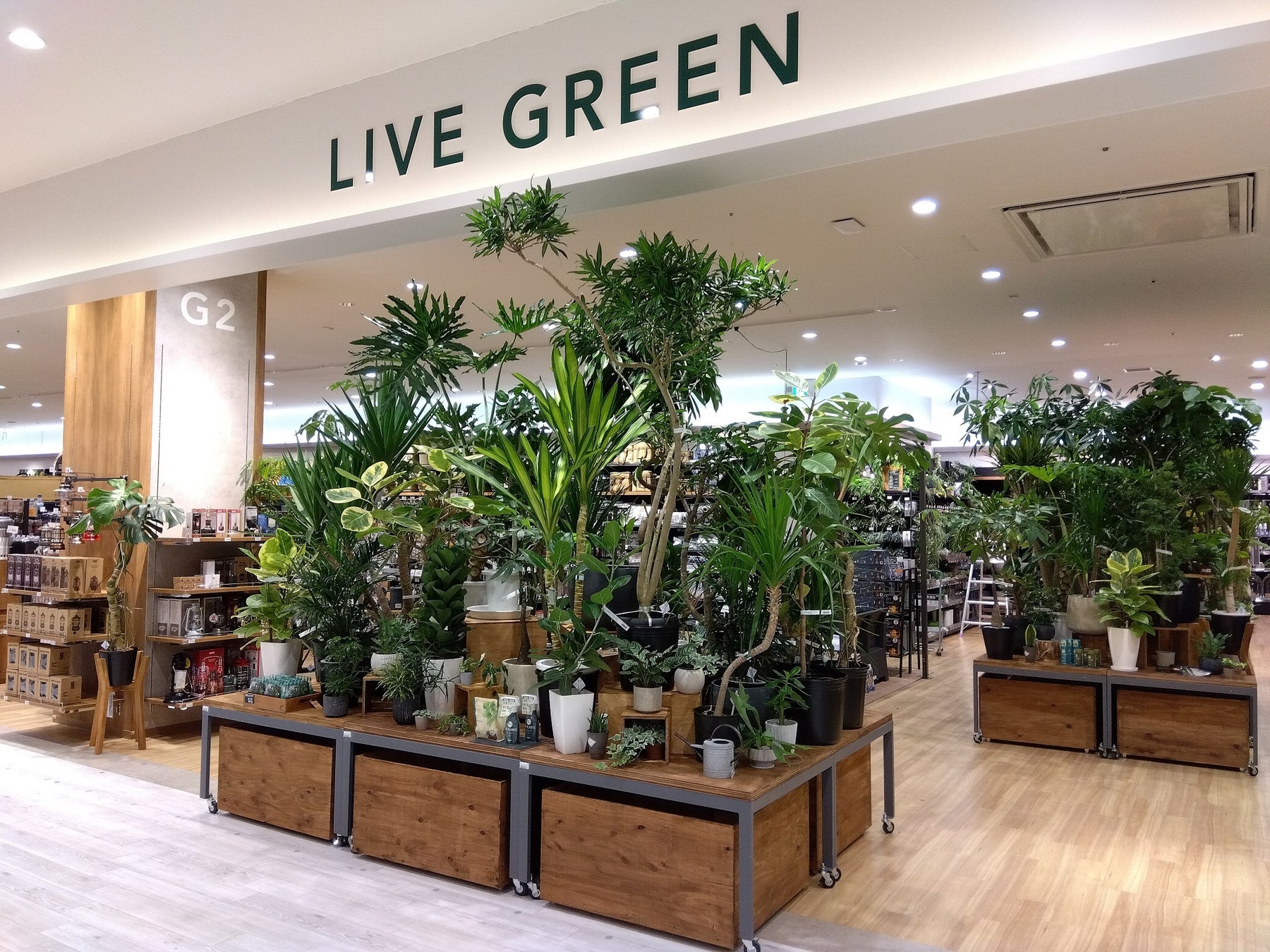 店内入口は、観葉植物や多肉植物、ガーデン雑貨が並ぶグリーンコーナーで構成され、お部屋の癒し空間を提案。また、奥へと進んでいくと、「外で食べる」シーンを想定した家庭用品×アウトドアや、レジャー×キッチンの商品が並び、お庭や外出先などの「お外で作って食べる」スタイルを提案しています。