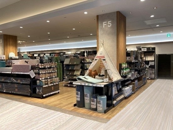 インテリア売場は既存の商品別のレイアウトの枠をこえ、インテリア&ペット、寝具、ワークスペース、リビングスペースが一体となった売場に。大切なペットと過ごすシーンから、テレワークや家族と過ごすシーンまで、あらゆるお部屋のくつろぎ空間づくりの手助けとなる商品を取り揃えています。