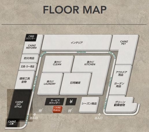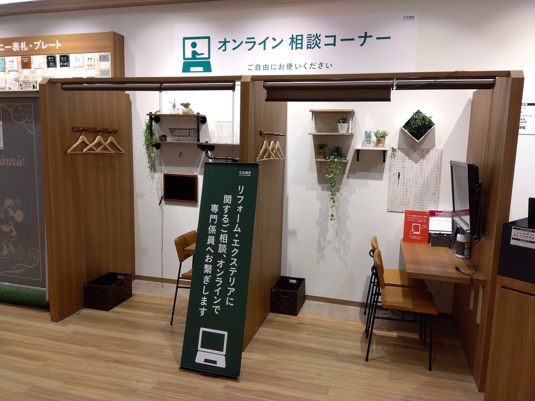 約1,000坪という限られたスペースを生かすために、リフォームコーナーではカインズ初となるオンライン相談コーナーを設置。また事前予約で欲しい商品を探し回ることなく購入できるPickUpロッカーや、売場に無い工具や金物各種をCAINZ-DASHのカタログ内250万アイテムからメーカー取り寄せができるサービスもございます。