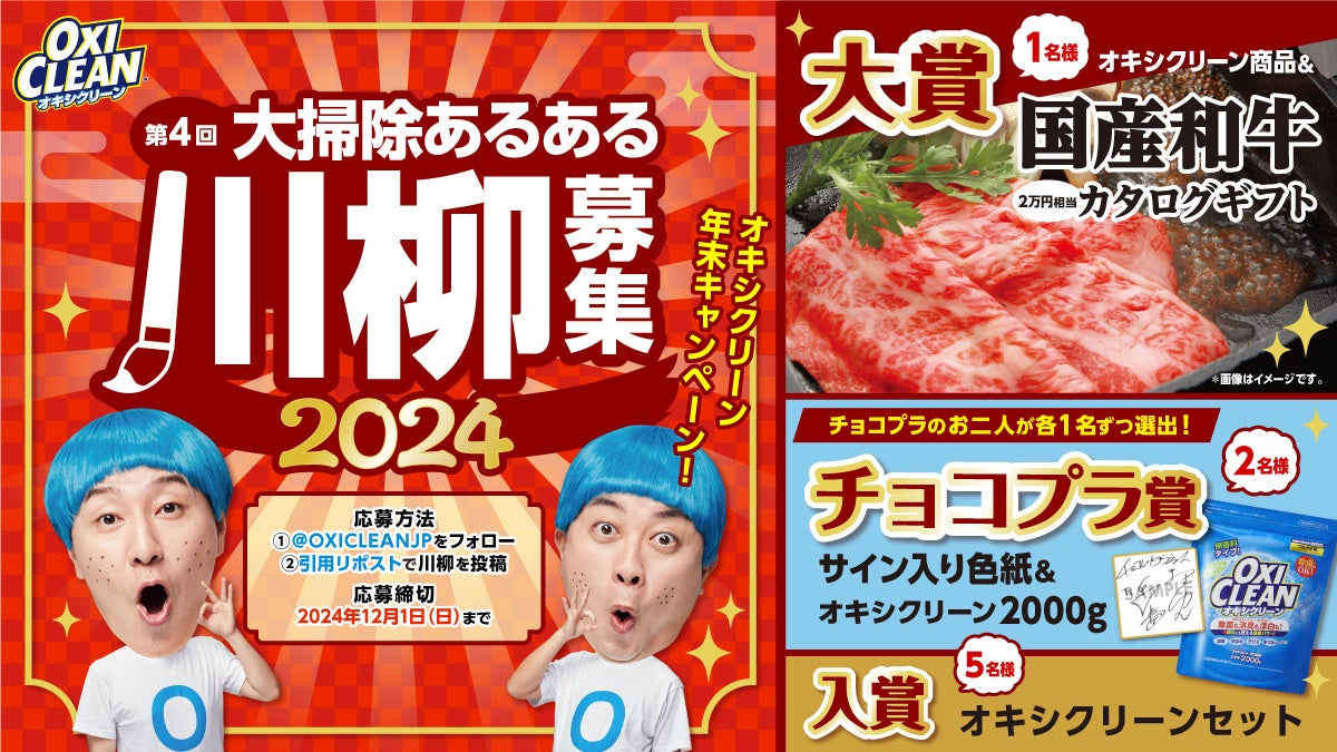 株式会社グラフィコ(代表取締役社長:マイケル・リード)は、2024年11月18日(月)~2024年12月1日(日)にかけて「第4回 大掃除あるある川柳コンテスト2024 オキシクリーン年末キャンペーン」をオキシクリーン公式Xにて実施いたします。