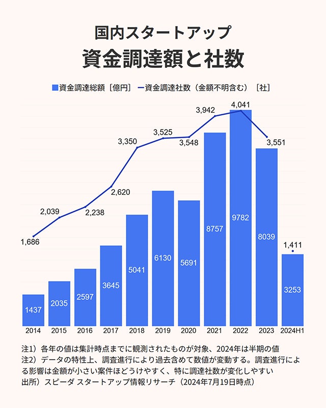2024年上半期の国内スタートアップ資金調達額は3253億円。スピーダ 、『Japan Startup Finance 2024上半期』の速報を公開