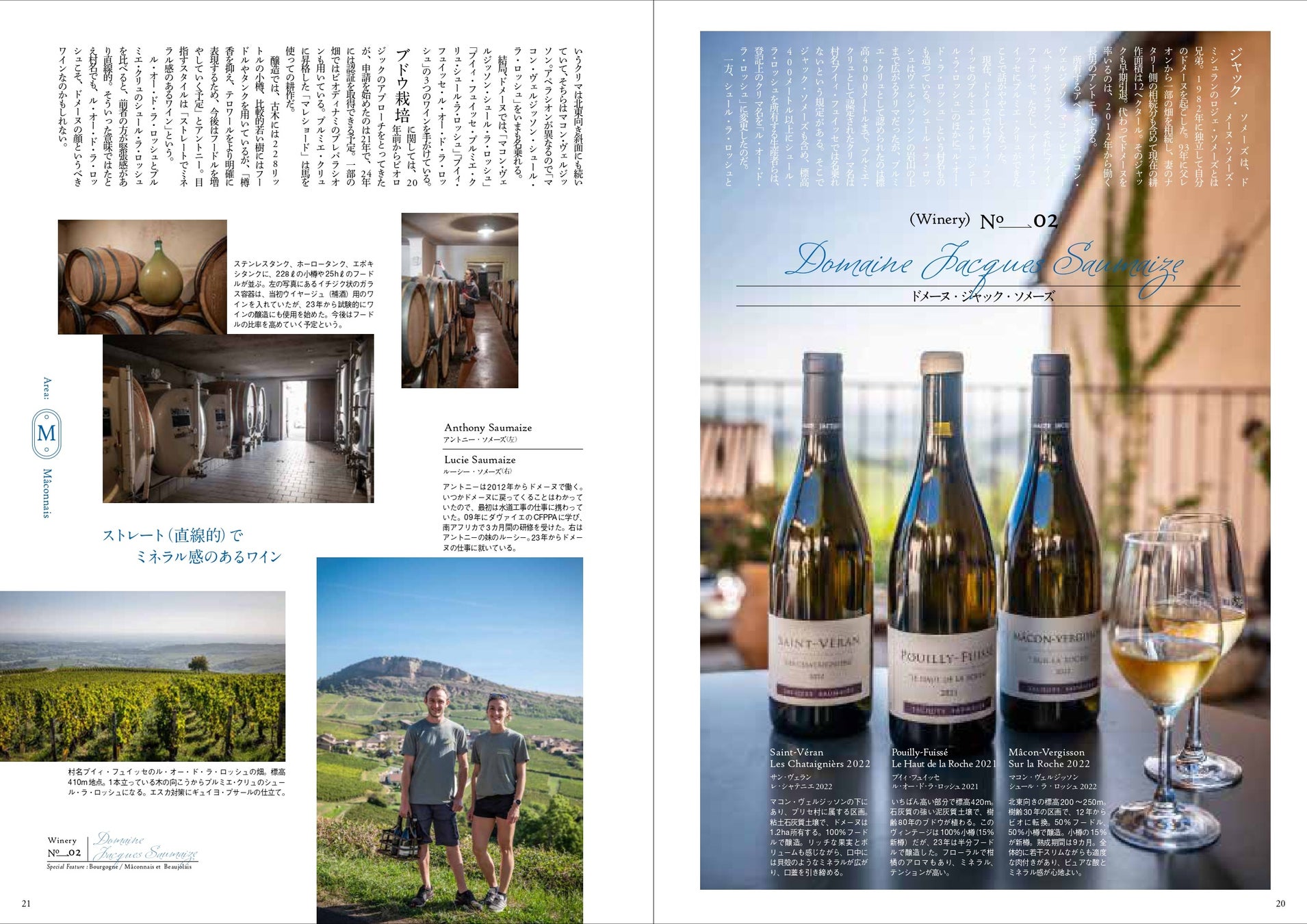今特集では、この両産地から注目の12生産者を紹介。地元のワインショップいちおしのワインや、おすすめレストラン情報のほか、話題のプルミエ・クリュ昇格に関して、プイィ・フュイッセ生産者連合会長の特別インタビュー記事も掲載しています。