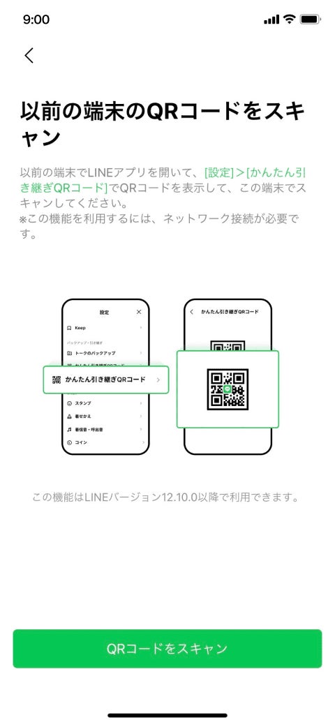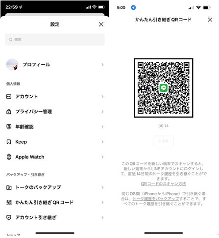 ステップ2、ログインした後、iPadの方で「設定」から「簡単引き継ぎQRコード」を選びます。表示されたQRコードをiPhoneでスキャンします。