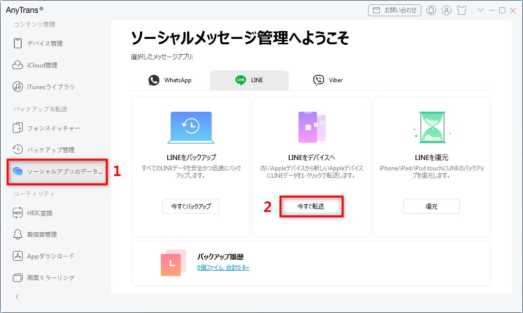 それは専用ソフト「AnyTrans 」を利用することです。AnyTransを使えばまずシステムの制限がなく、iPhoneやiPad、android、Windowsパソコンなどにトーク履歴を転送できます。また、その履歴をまとめて管理することもできます。専門知識不要で、数クリックだけでlineトーク履歴を移行したり、バックアップしたりすることが可能です。