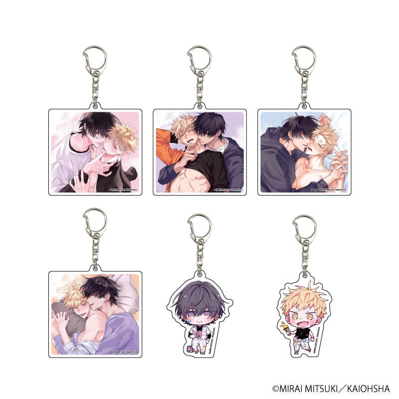 アクリルキーホルダーは最大縦横65×65mmで、デザインに合わせてダイカット加工されているため、龍司&千翼の魅力が存分に堪能できます。龍千からたっぷりお砂糖を浴びましょう……!