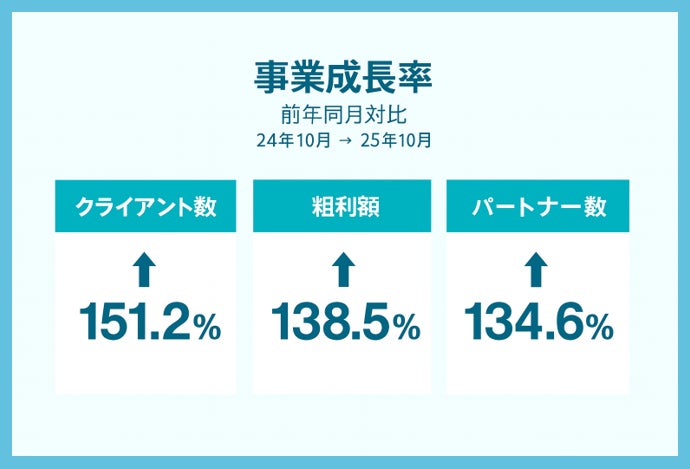 直近では、成果型広告領域においてクライアント数・粗利額・パートナー数が前年同月比で増加しており、成果管理や売上貢献の可視化に対するニーズが一段と高まっています。特にアフィリエイト施策において、この伸長が顕著になっています。