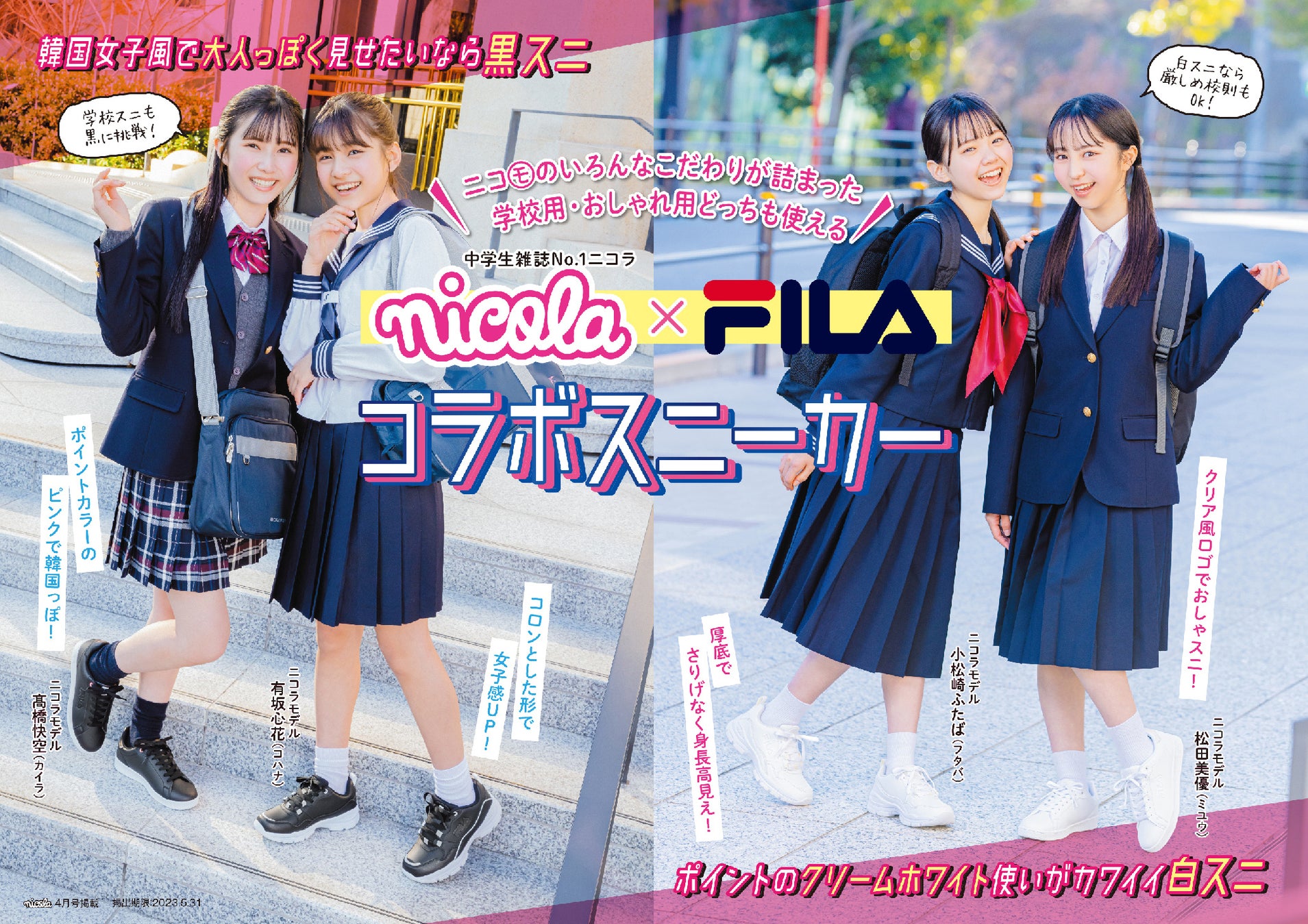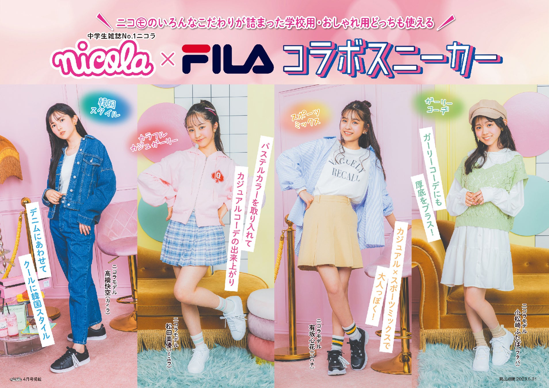 女子中学生雑誌No.1の「nicola」と、スポーツブランド「FILA」とのコラボスニーカーを全国のシュープラザ他、公式オンラインショップ「kutsu.com」にて発売