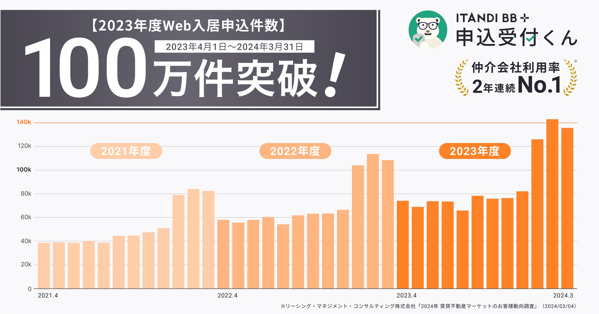 イタンジ「申込受付くん」、入居申込件数 年間100万件突破!