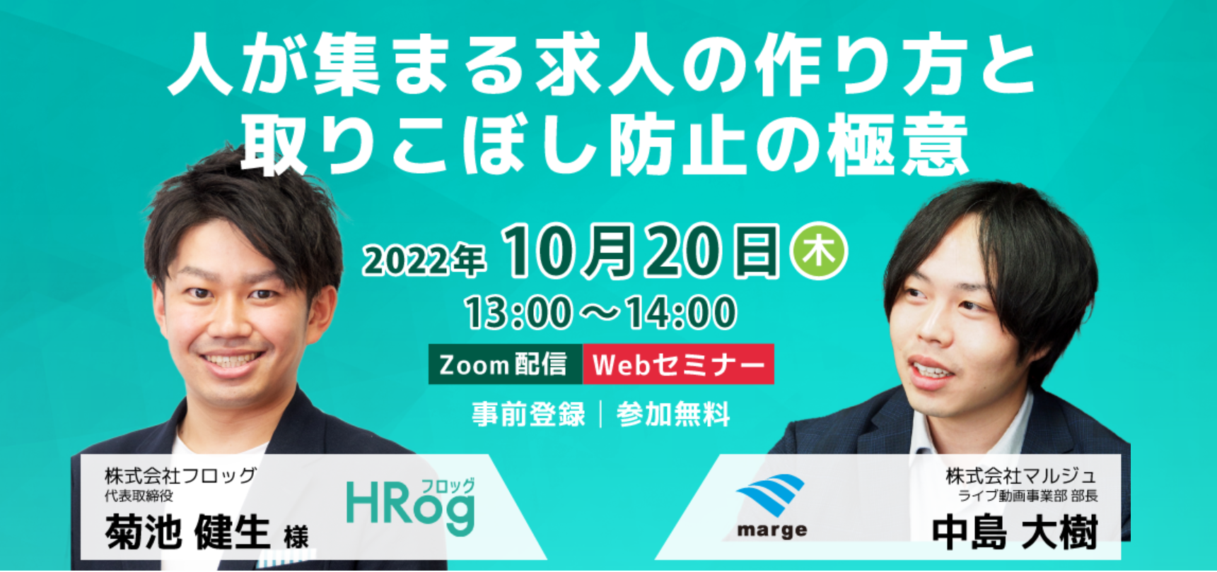 本セミナーでは、人材派遣会社様向けにサービス展開する株式会社フロッグ、株式会社マルジュが合同で、【人が集まる求人の作り方と取りこぼし防止】をテーマにお話します。