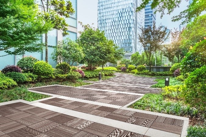 「レビアペイブ」は、歩道や、国立公園などの自然遊歩道、オフィスビルや商業施設内の広場、スマートシティなどでの活用を想定しています。「レビアペイブ」は、自然や景観に美しく溶け込む、木調のデザインが特長で、独自の表層デザインによって陰影が生まれ、光の加減によってさまざまな表情を楽しめます。
