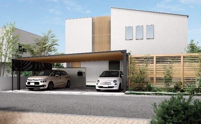 シンプルな美しさを追求し、住宅と美しく調和する「カーポートSC」より、「後方支持2台用」を発売。フロント部分が180°オープンになっており、前方に柱がないので、クルマの出し入れもスムーズにできます。そして、柱が後ろにあるため、ドアが当たる心配がないので、乗り降りが容易にできます。