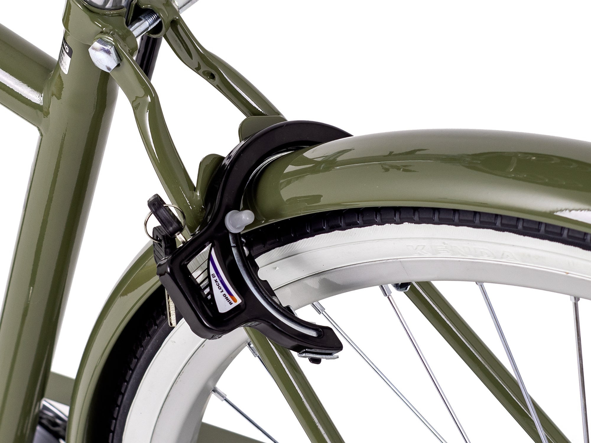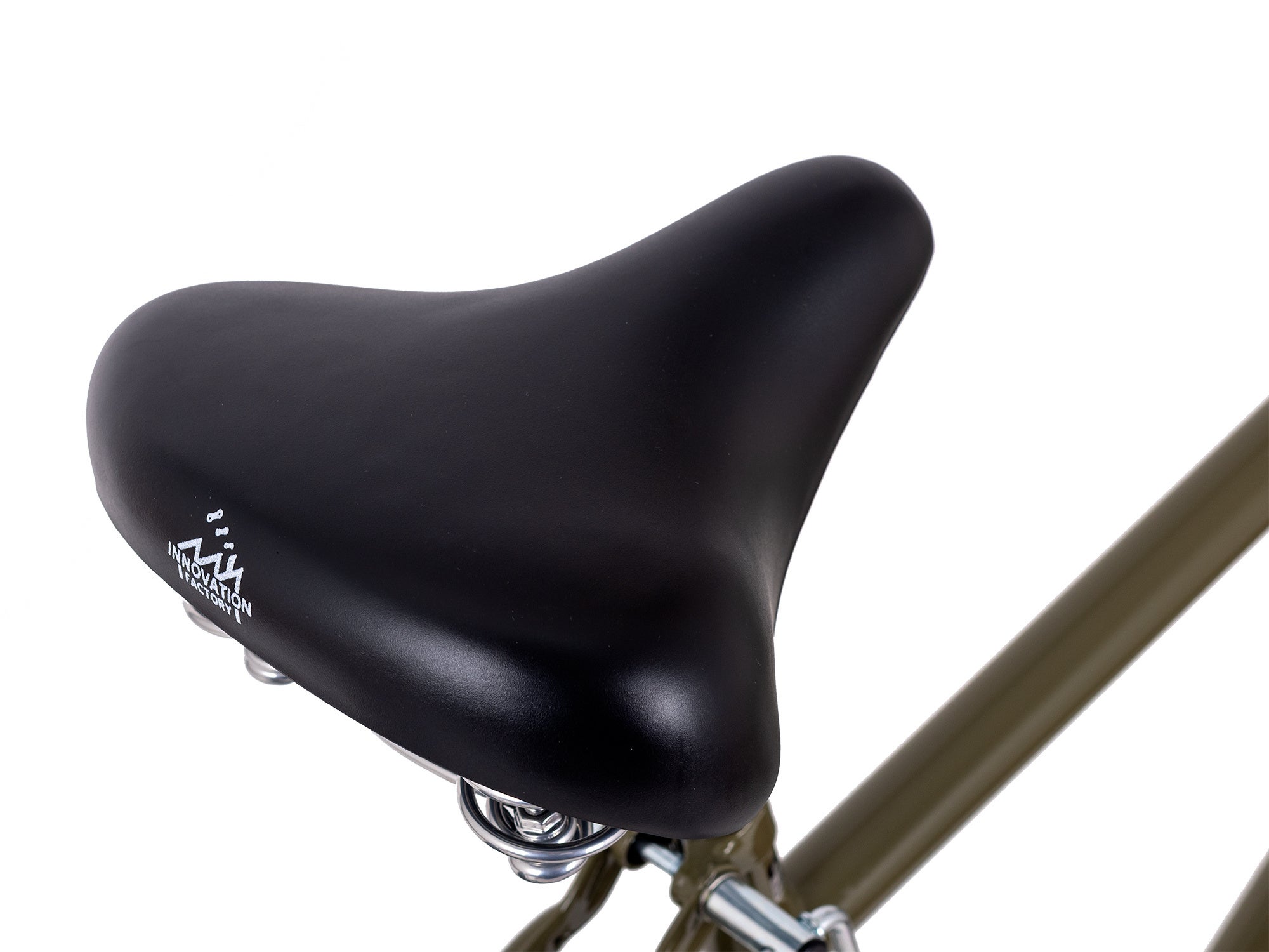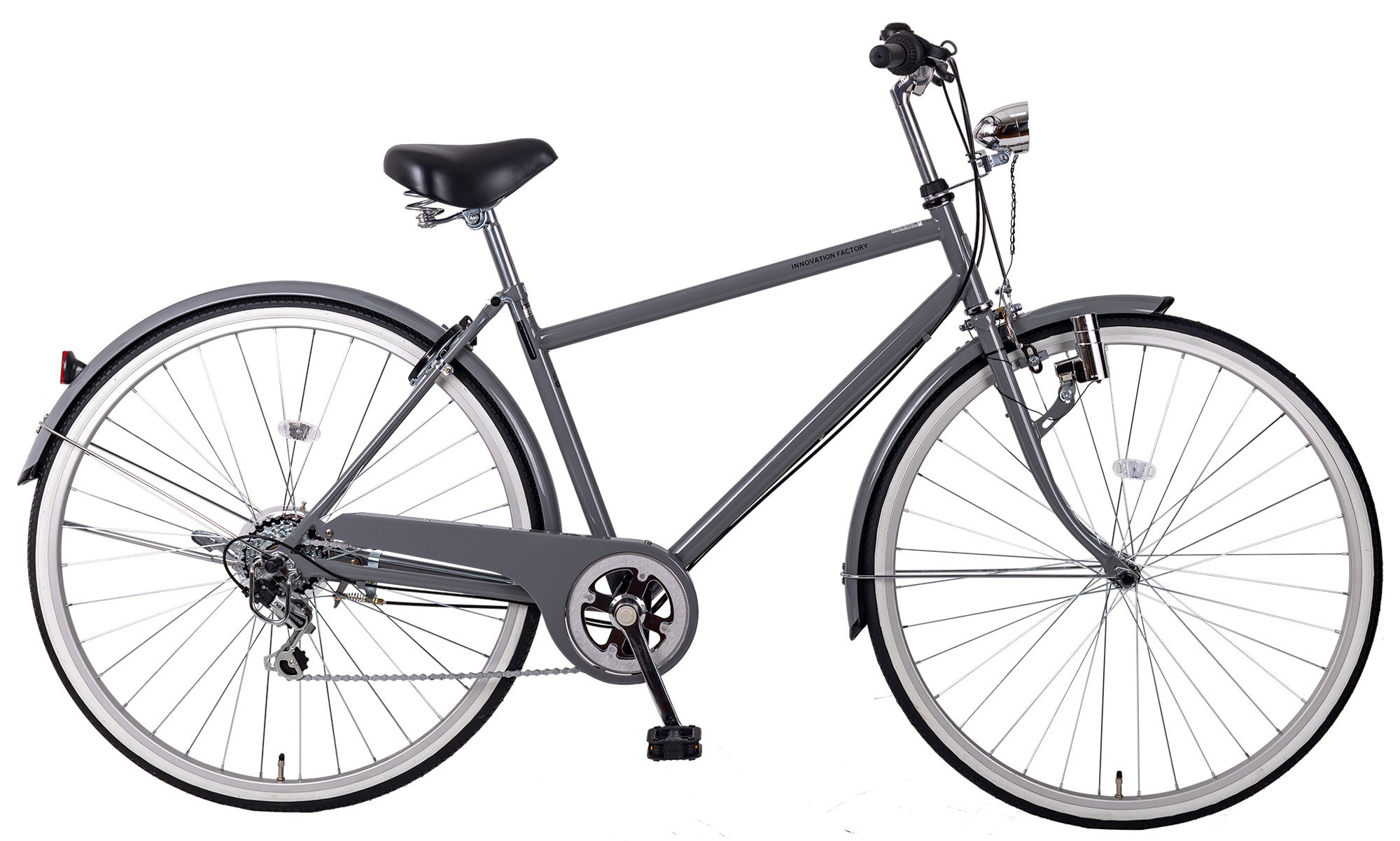 新発売の「イノベーションファクトリーシティS」は、背の高い男性にも乗車していただけるようフレーム寸法を調整し、直線的でシンプルなフレームに6段変速とストレートハンドルを採用。カラーはブラック、グレー、カーキの落ち着いたカラー展開で、幅広い層の方に選んでいただける自転車です。