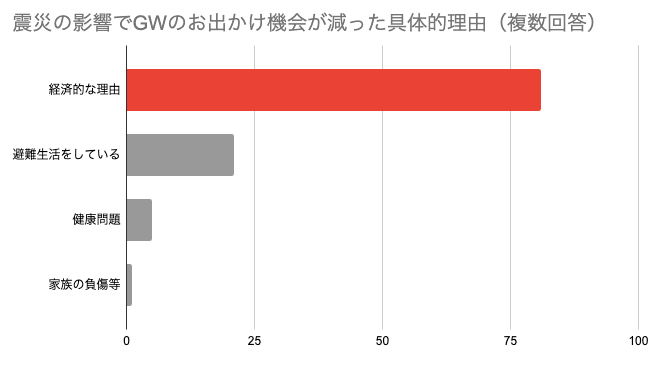 また別の設問で、「震災の影響で、(昨年と比較して)ゴールデンウィークのお出かけの機会が減った」と回答した人について、その理由をたずねると7割超が「経済的な理由」と答えました。