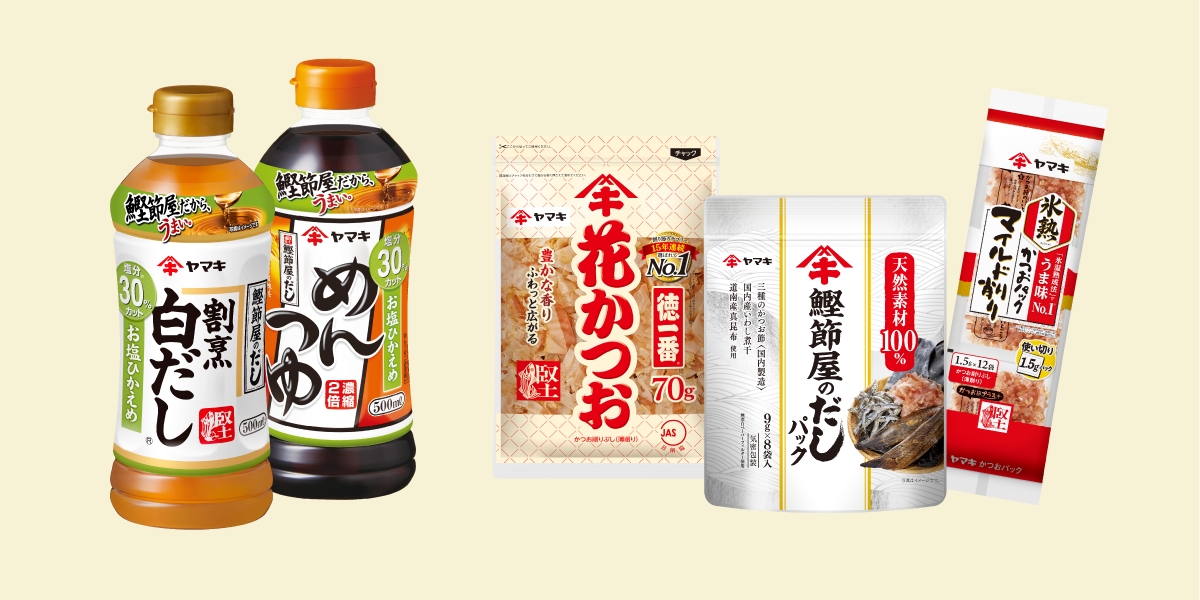 花かつおやだしの素、めんつゆ、割烹白だし、鍋つゆなど、皆さまに親しまれている商品の開発を次々と行い、近年では家庭用商品のみならず、外食・中食向けの業務用製品の開発や海外事業にも積極的に取り組んでいます。
