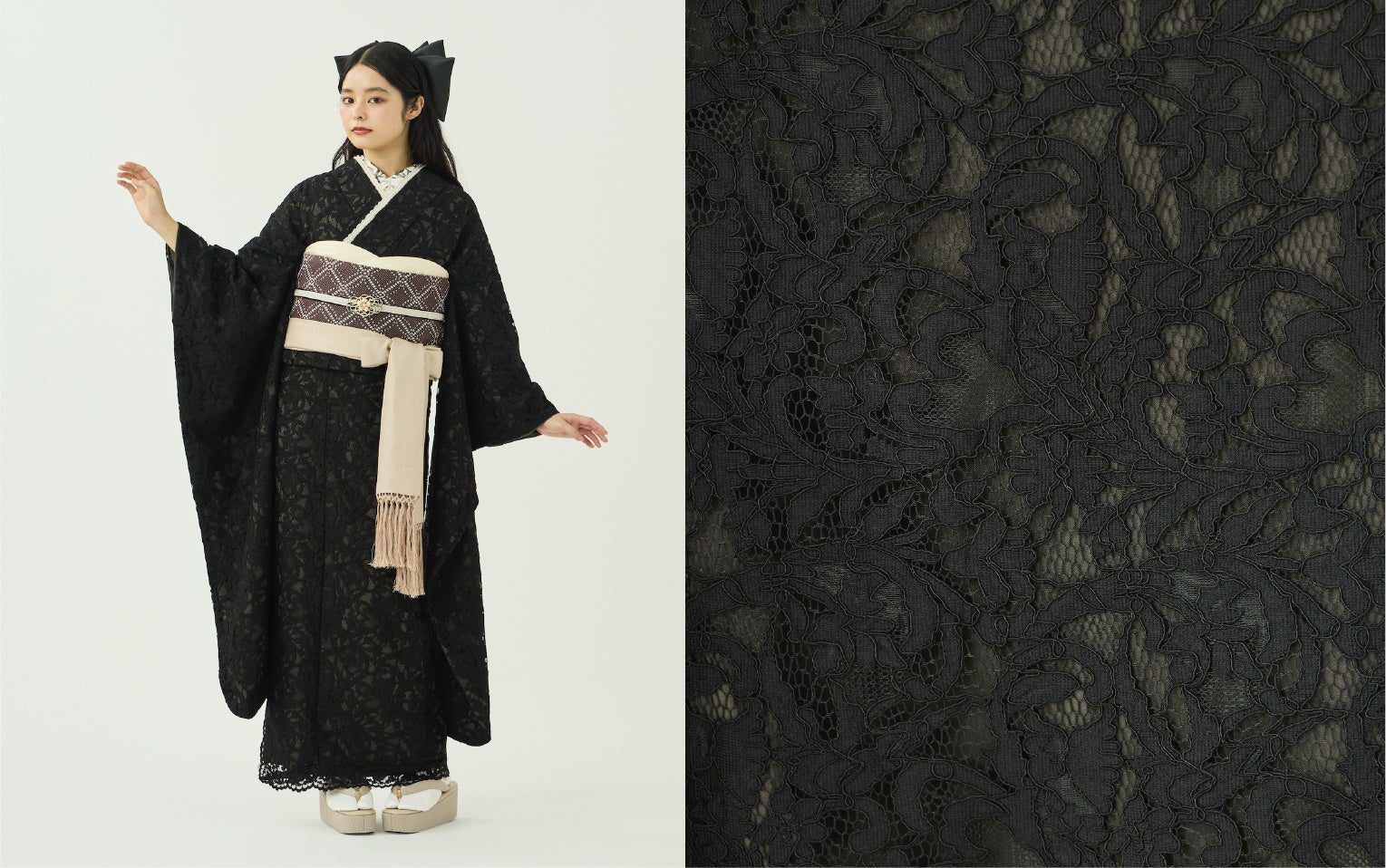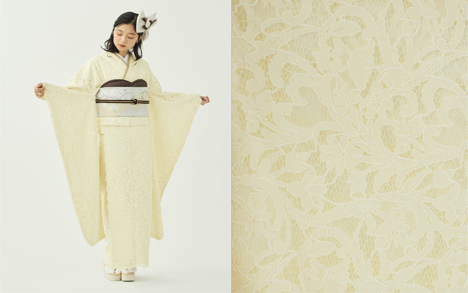 ※レースの振袖は仕立て上がり品(M、L)のみのお取り扱いとなります。お客様の体型に合わせたサイズ(パターンオーダー)でのお仕立ては承っておりませんので、ご了承ください。