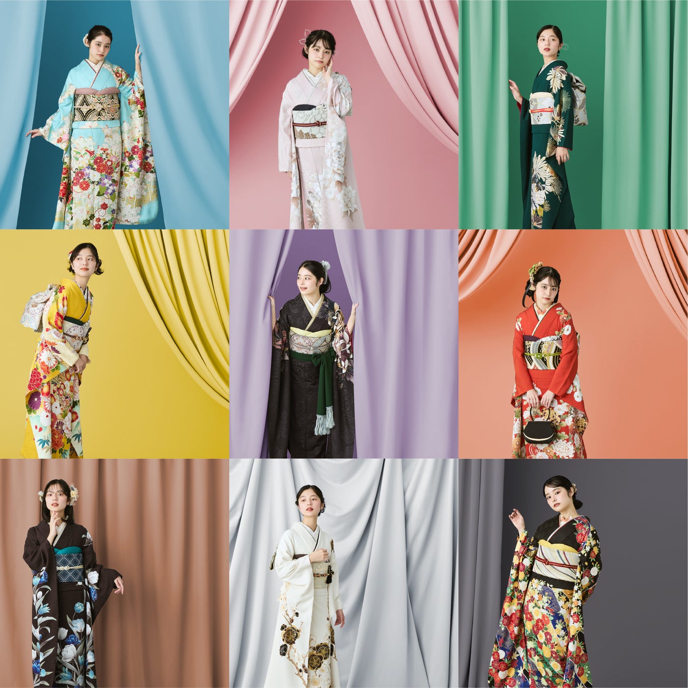 2022年12月から展開しているオリジナル振袖に、新作9着が加わります。それぞれの色と柄が持つ世界観を大切にし、想いを込めてデザインしています。