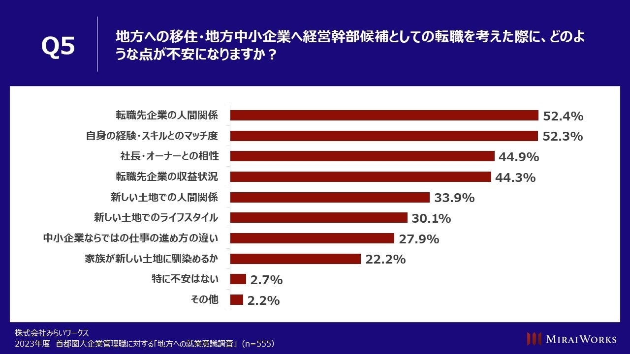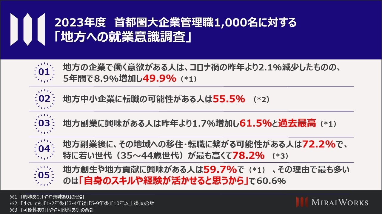 2022年度 首都圏大企業管理職に対する「地方への就業意識調査」https://mirai-works.co.jp/news/news6540/
