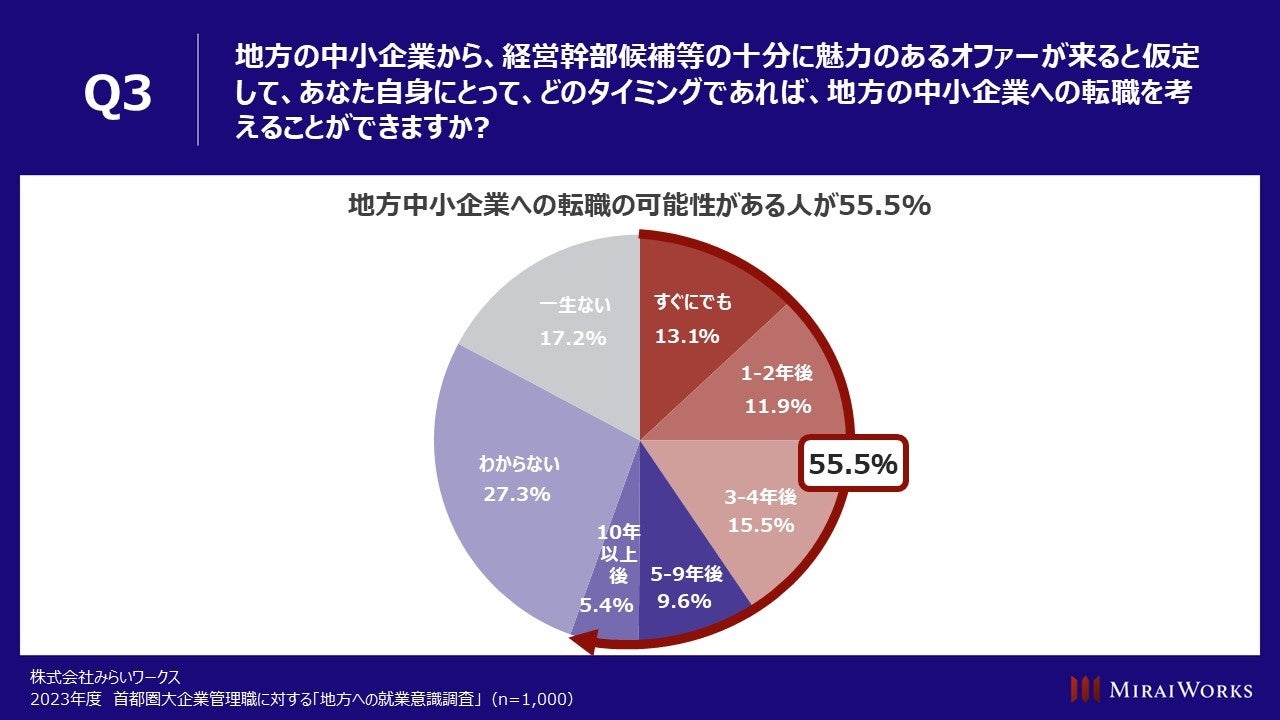 2021年度 首都圏大企業管理職に対する「地方への就業意識調査」https://mirai-works.co.jp/news/news497/