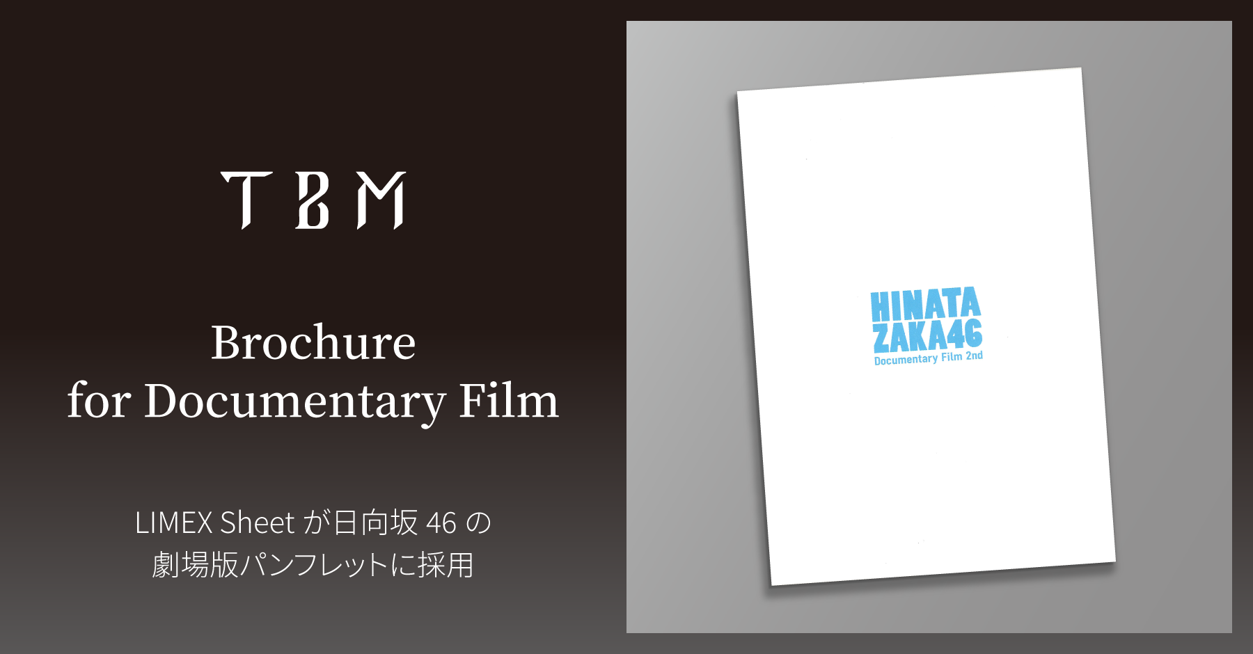 株式会社TBM(本社:東京都千代田区、代表取締役CEO:山﨑敦義、以下TBM)の「LIMEX Sheet(ライメックスシート) 80μm」が、全国で上映中の日向坂46のドキュメンタリー映画『希望と絶望 その涙を誰も知らない』の劇場パンフレットに採用されました。