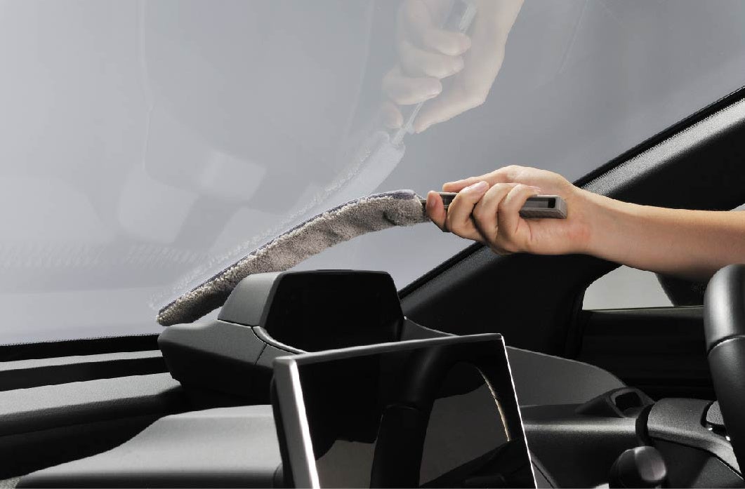 クロスでは届かない奥や隙間にも、しなって届く内装用ワイパー
