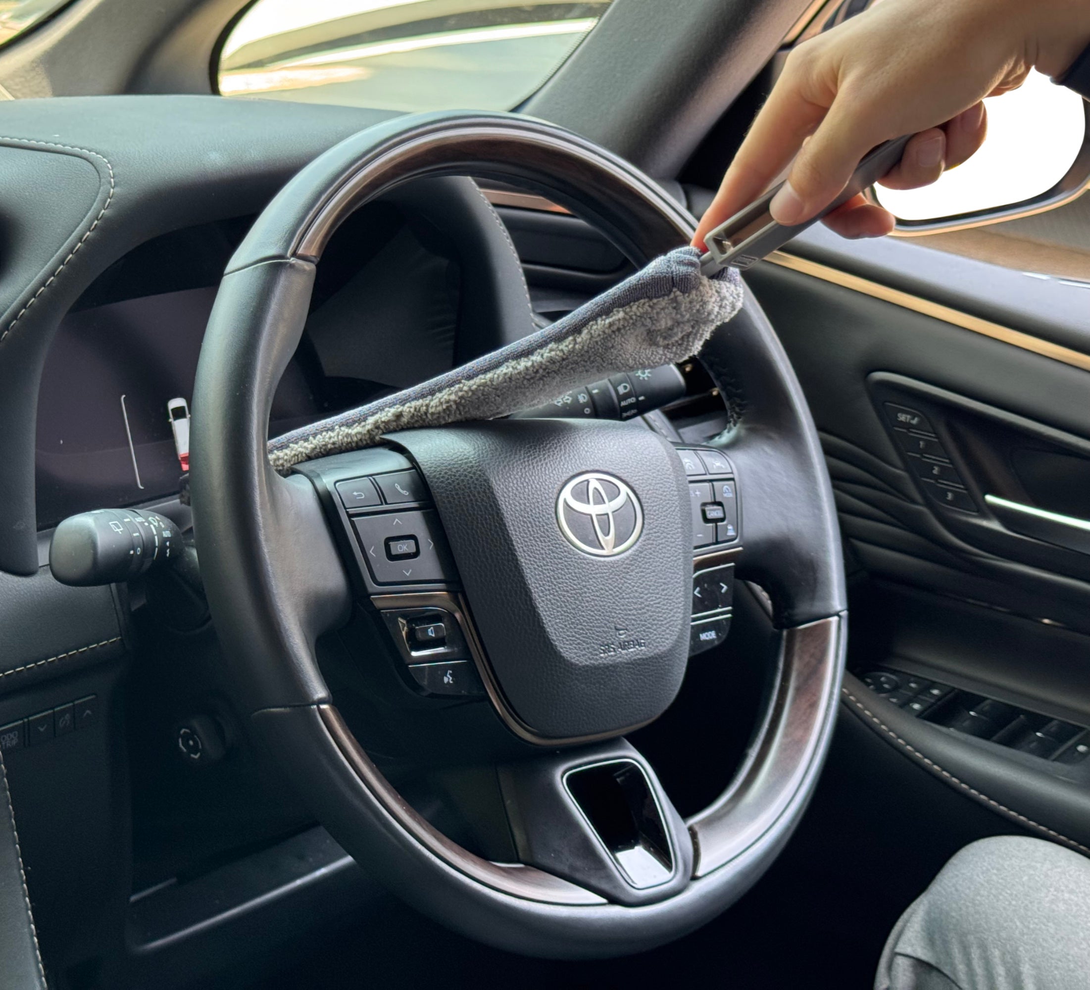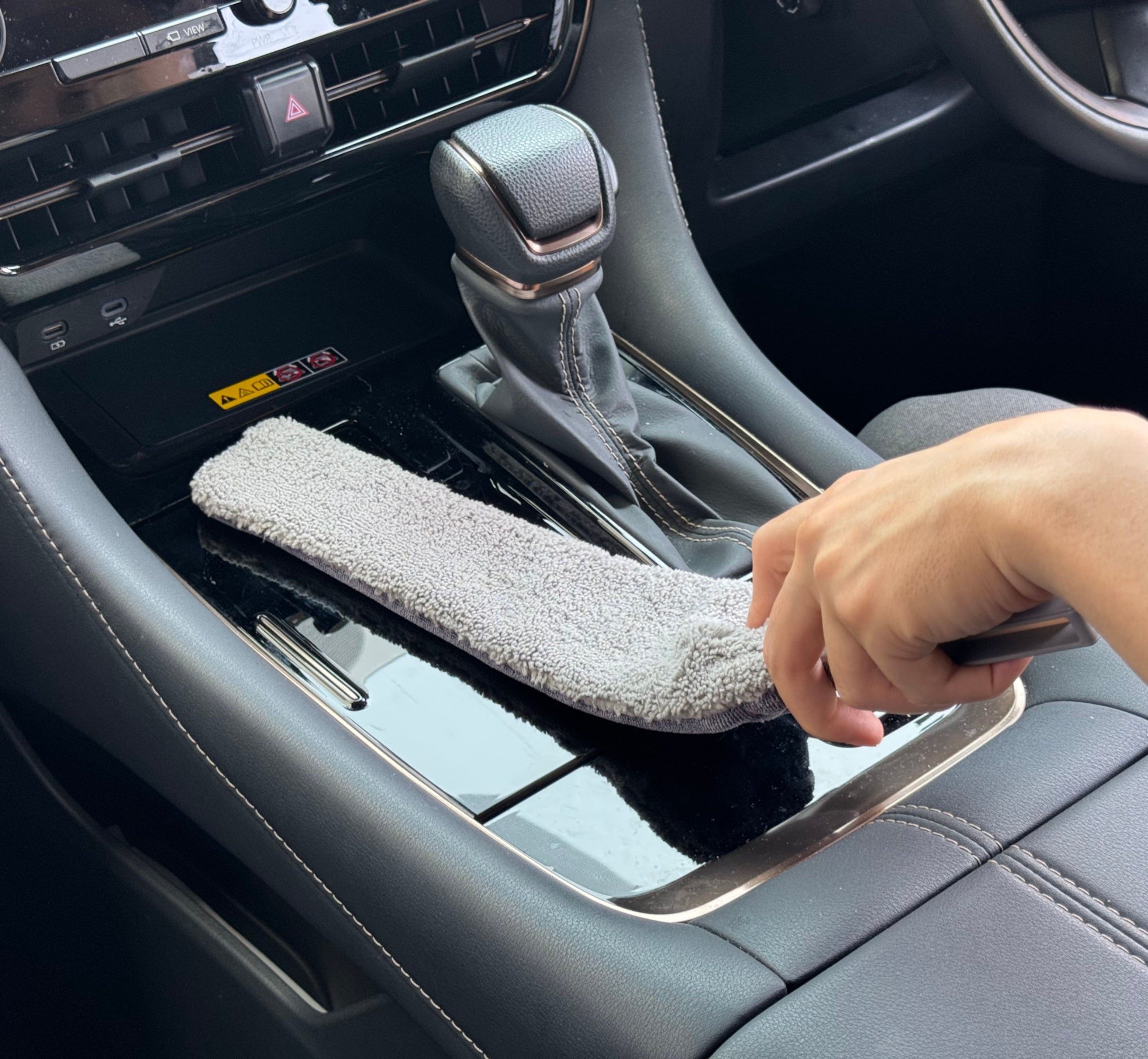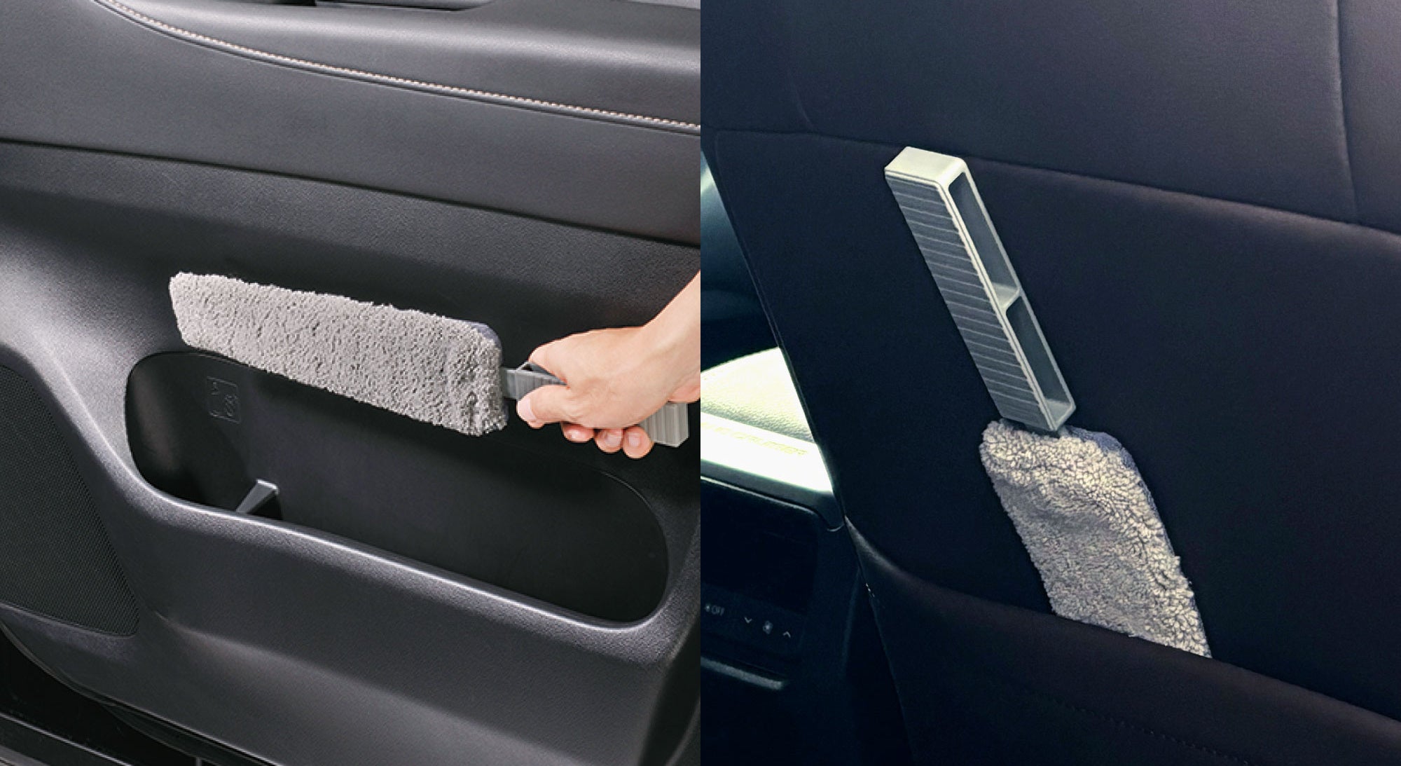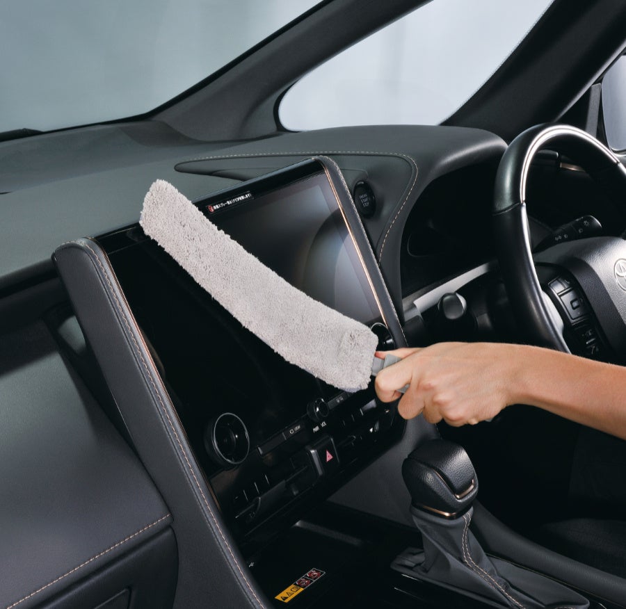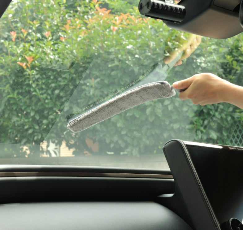 ヘッド部分は柔軟素材で、ダッシュボードやコンソール/ハンドル周り、ディスプレイ、メーターの奥、内窓なども掃除がしやすい仕様。 -