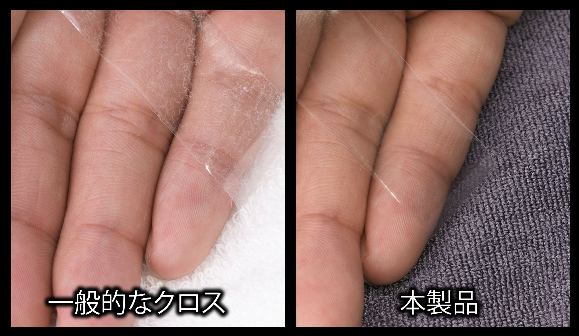 当社従来品(C118)比200%のパイルループ数かつ、多角形状にカットされたソフトで超極細繊維のマイクロファイバークロスが、汚れをしっかりキャッチするため、拭きスジを残さない。また、一般的なクロスと比較し毛羽残りがしにくい仕様 -