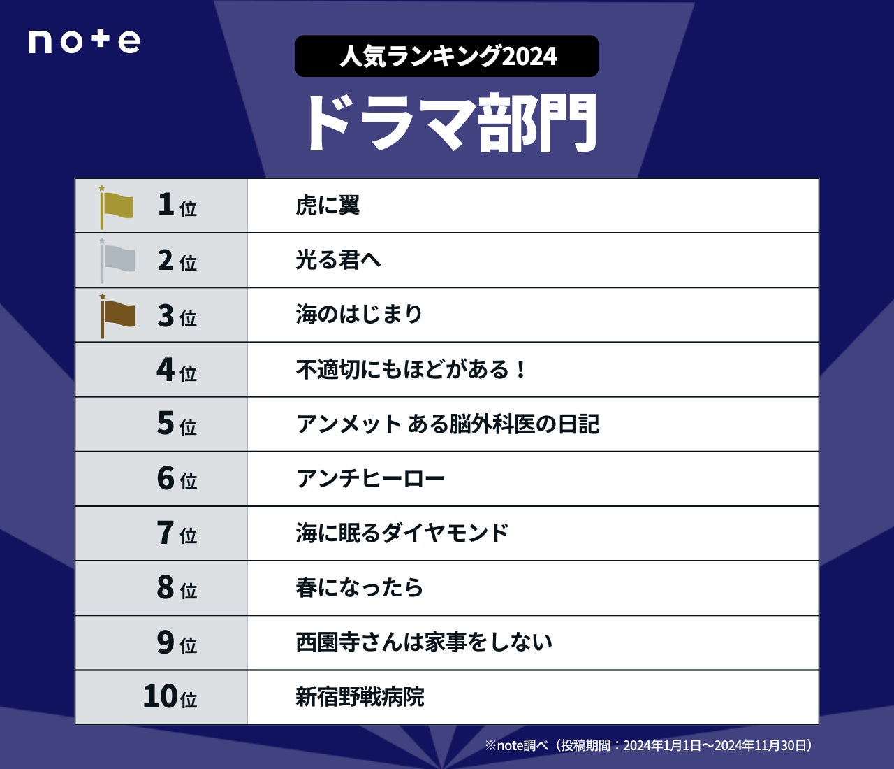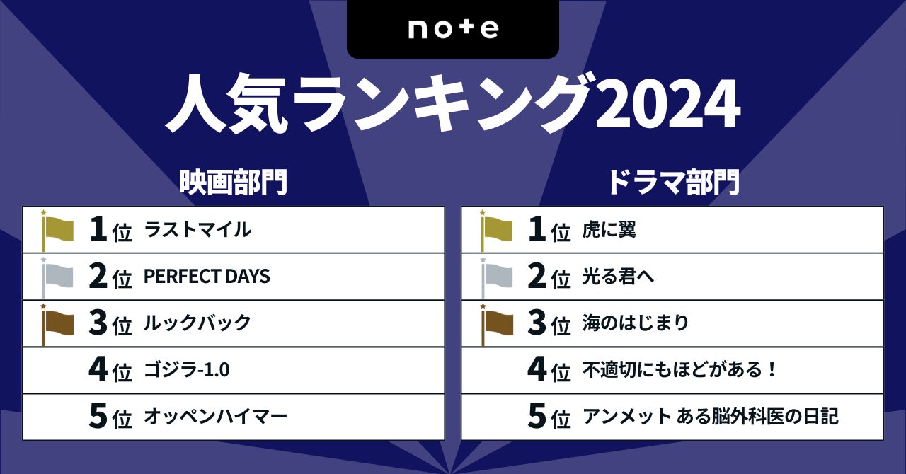 2024年にnoteで話題になった映画・ドラマのランキングを発表しました。