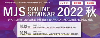 【参加費無料】『MJSオンラインセミナー2022秋』開催 2大法改正を見据えたビジネスプロセス改革とDX化推進をご提案