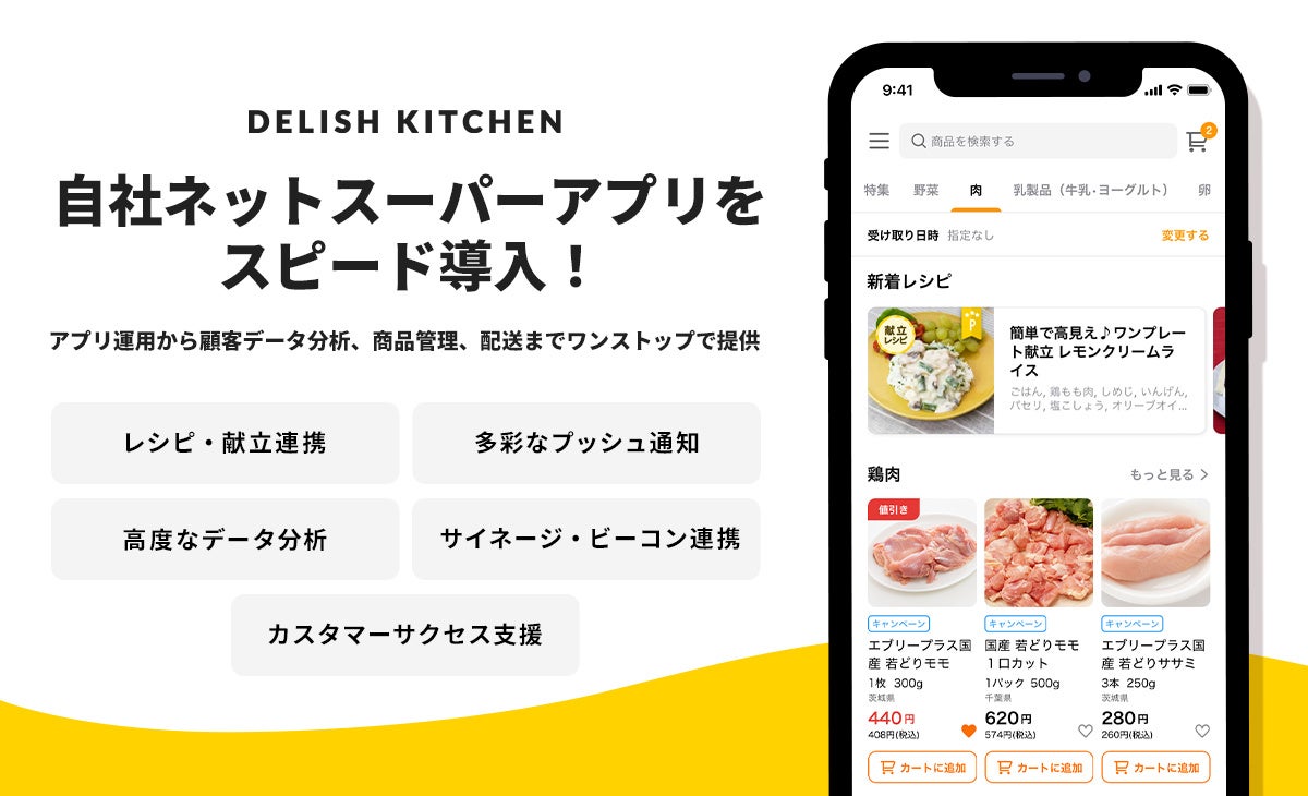 これにより、エブリーはオンライン購買における消費者接点となるネットスーパー機能を強化。利用者数3,500万人を超える『DELISH KITCHEN』のアプリ開発・運営ノウハウを活用し、コンシューマ向けのUI/UXの最適化を図ります。また、WEBのみでの提供形態が多いネットスーパーですが、集客手段拡大・使いやすさの向上等を踏まえたアプリリリースへのニーズも顕在化してきており、本事業譲渡によりWEB・アプリ両面でのシステム開発・改善スピードを向上させることで、シェア拡大を目指します。
