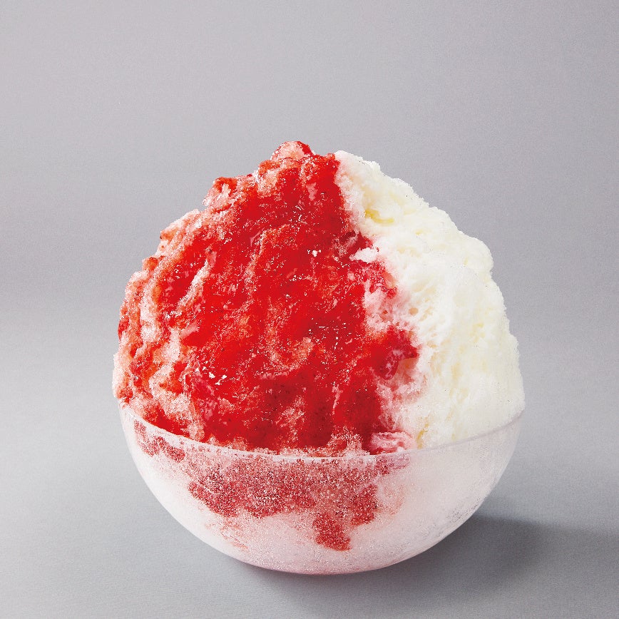 ツムギこだわりの「天然水の削り氷」とは、極薄に削り、ふわふわに仕上げた氷をツムギこだわりのソースとともにお楽しみいただく看板メニューです。氷は中央アルプスと南アルプスに囲まれた全国有数の花こう岩地帯の天然水でつくった高純度な氷を使用しています。定番人気の「濃い苺みるく」「袋布向春園(たふこうしゅんえん)お抹茶&北海道あずき」(各1,210円)は通年で販売しています。