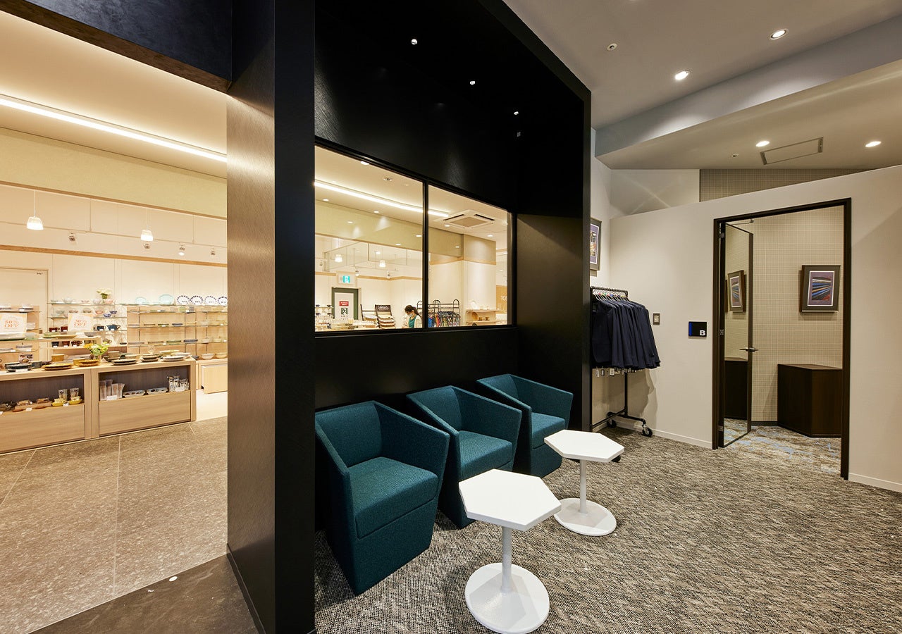 個室空間で快適にオーダーできるプライベートフィッティングルーム(無料/要予約)をご用意しております。