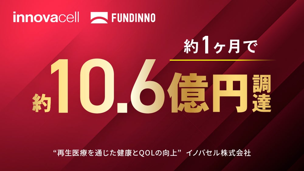 イノバセル株式会社、FUNDINNO PLUS+で約1ヶ月で約10.6億円を資金調達