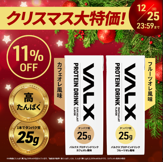 セール会場:https://valx.jp/lp/protein-day/2022-christmas/?ad_code=sale_prtimes_officialpr_1[…]n_id=1&utm_medium=prtimes&utm_campaign=sale&utm_source=officialpr