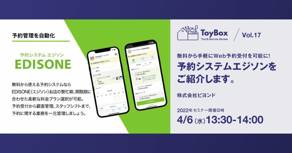 2022/4/6(水)ToyBox Vol.17【無料】無料から手軽にWeb予約受付を可能に! 予約システム、エジソンをご紹介します。