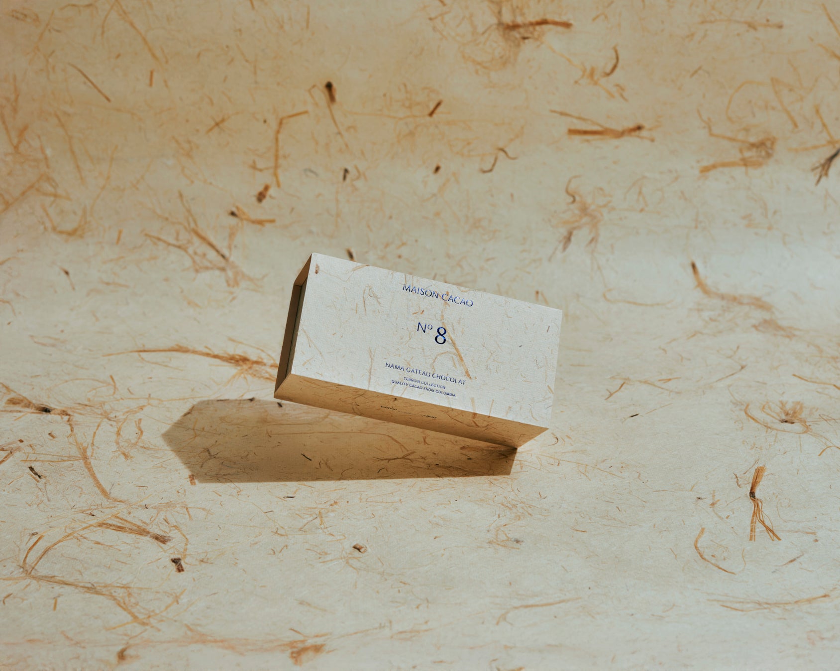No.8は夏にカカオの鮮度を楽しんでいただきたいと、素材の持つ旨みや奥深さを引き出したブレンドによって誕生しました。コロンビアの中でも鮮やかな個性を持つ2つの地のテロワールを生かした華やかなビターチョコレートと、カカオニブをそのまますりつぶした”カカオマス”を合わせた生ガトーショコラです。カカオの美味しさが凝縮されたカカオマスを加える独自の製法が、新たな美味しさの扉を開きます。個性豊か、でも決してクセはないメゾンカカオならではのカカオの魅力をそのまま、お楽しみください。