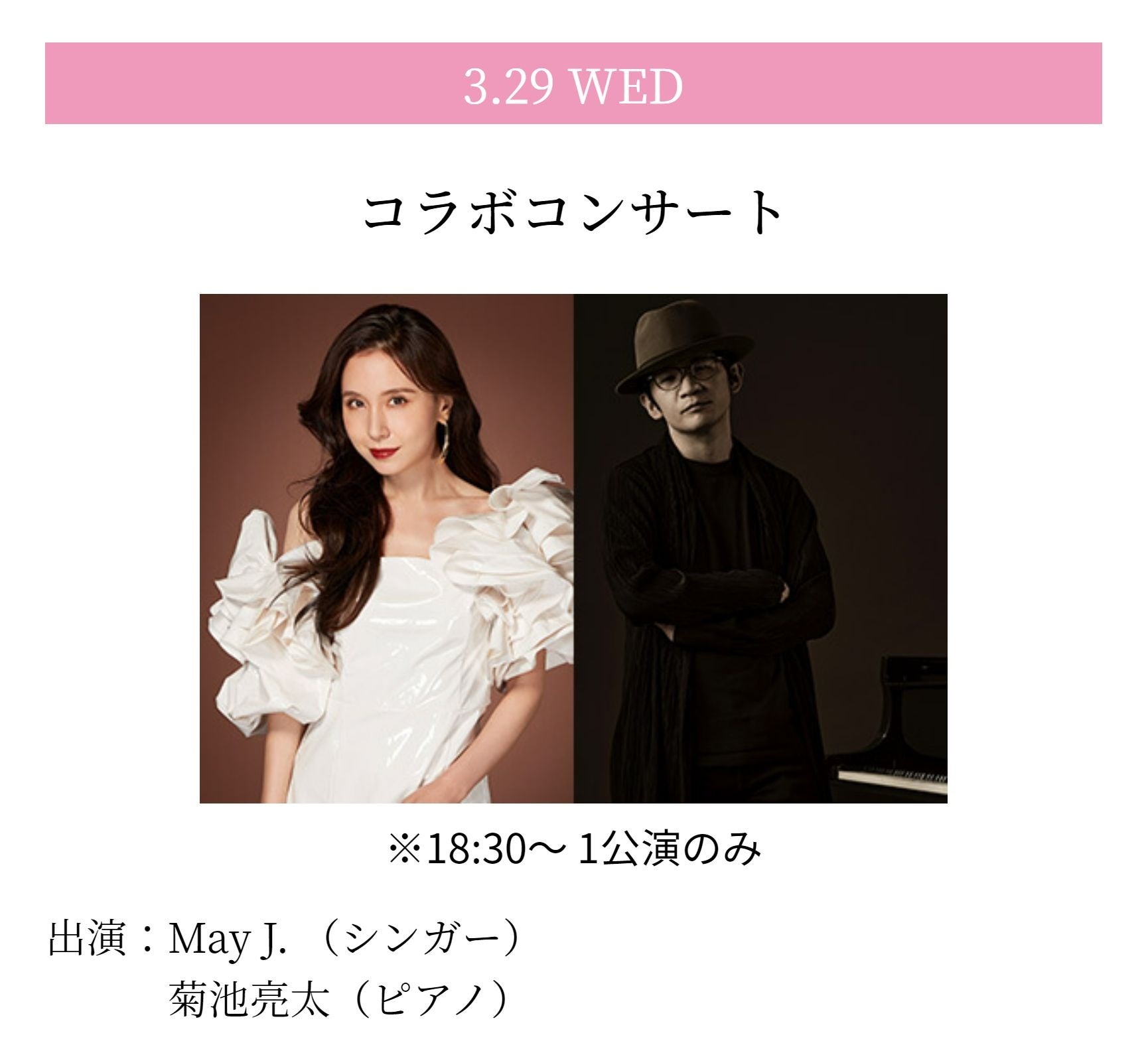 また、「5th Anniversary Concert」の全日程出演者が決定。東京ミッドタウン日比谷5周年当日である3月29日(水)にはMay J.と菊池亮太によるコラボステージを開催いたします。周辺施設でも様々なイベントを実施しておりますので、街全体が祝祭感に包まれるこの春、ぜひ日比谷の街へ足をお運びください。