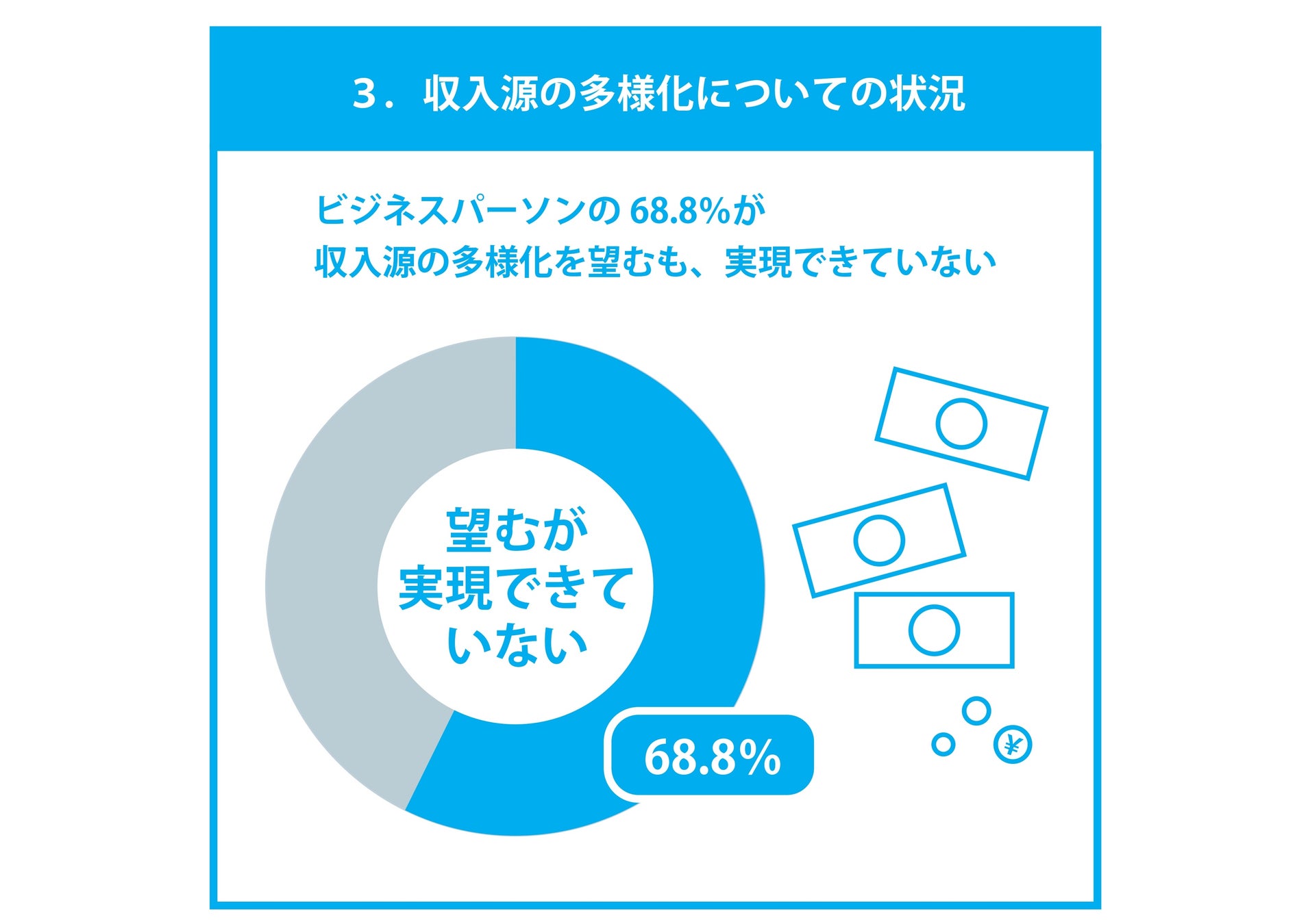 ・「本業だけでは不十分…68.8%が『収入源の多様化』を望むも実現できず。」