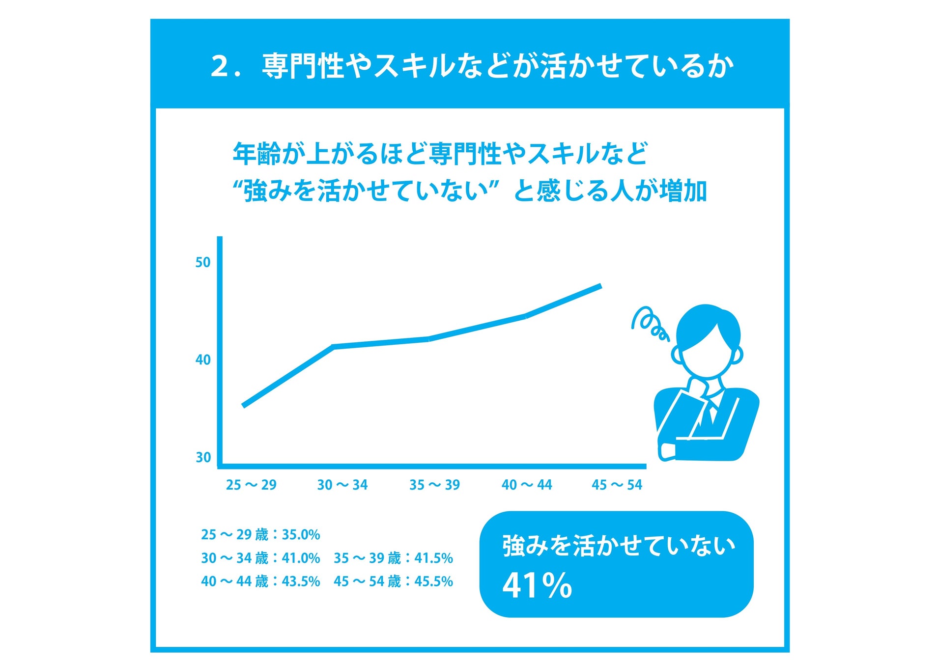 ・「年齢が上がるほど自身のスキルを活かせていないと感じる傾向に。ベテランの“スキルの持ち腐れ状態”が深刻に。」