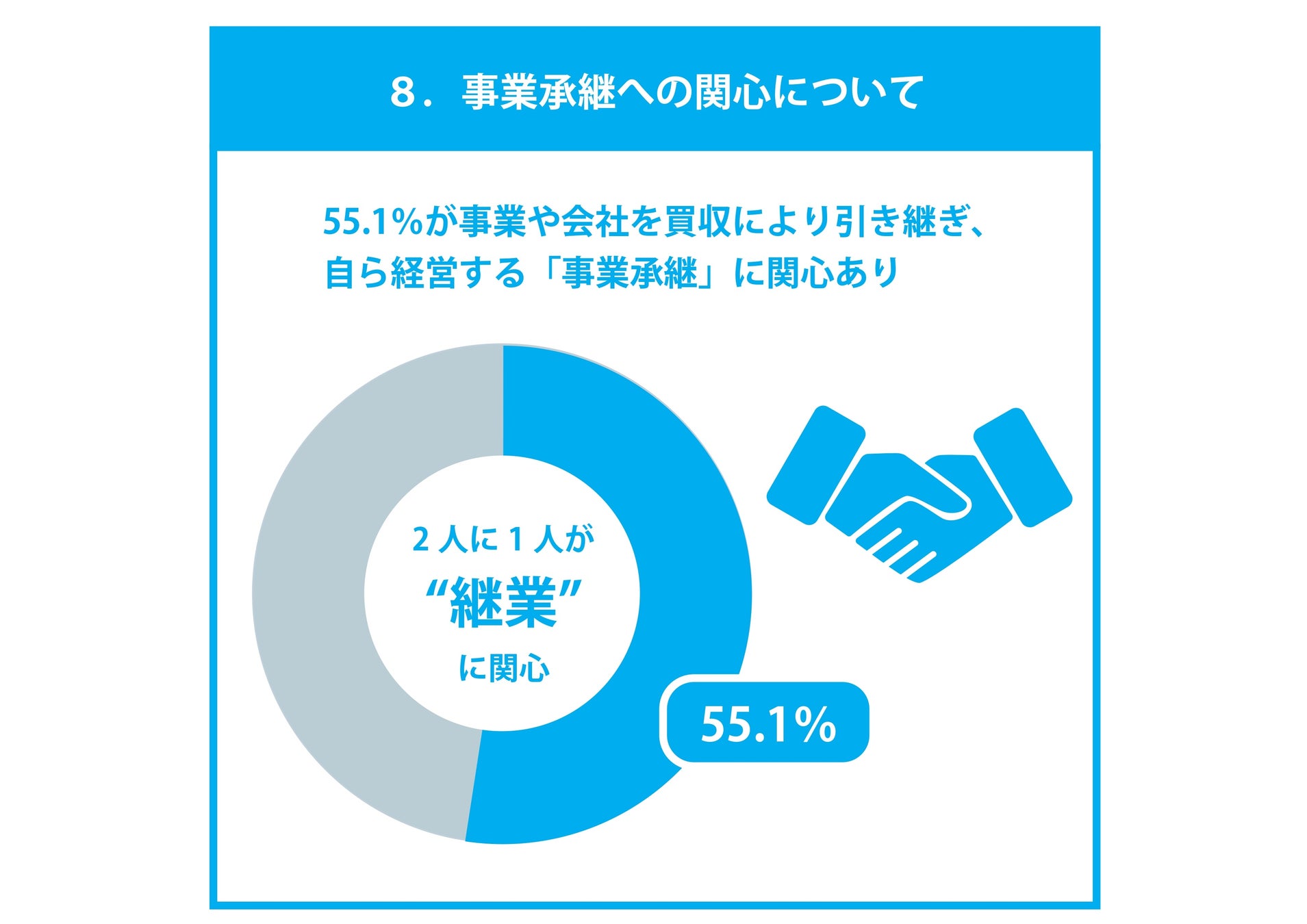 ・「キャリア形成の新たな手段に55.1%が『事業承継』関心あり。」